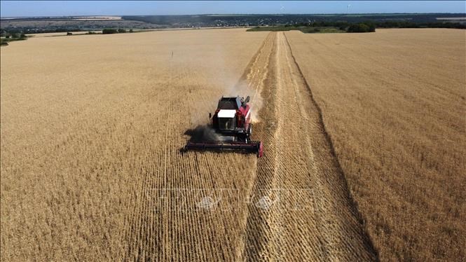 Nông dân thu hoạch lúa mì tại Mykolaiv, Ukraine. Ảnh: AFP/TTXVN