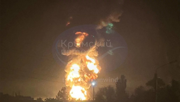 Hình ảnh được cho là từ một vụ hỏa hoạn ở Crimea sau đòn tập kích rạng sáng 6/10. Ảnh: ITN