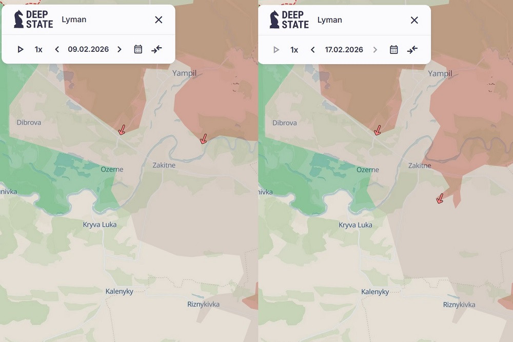 Theo bản đồ cập nhật từ trang Deep State của Ukraine, quân Nga trong khoảng thời gian từ ngày 9 – 17/2 đã kiểm soát thêm một số khu vực ở đông nam thành phố Lyman thuộc Donetsk, Ukraine.