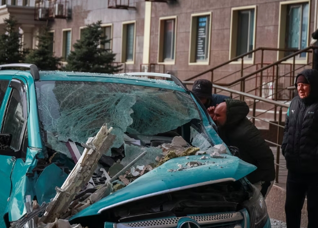 Tymur Tkachenko, người đứng đầu chính quyền quân sự của thủ đô, cho biết một kho chứa đã bị hư hại và nhiều ô tô bị bốc cháy.