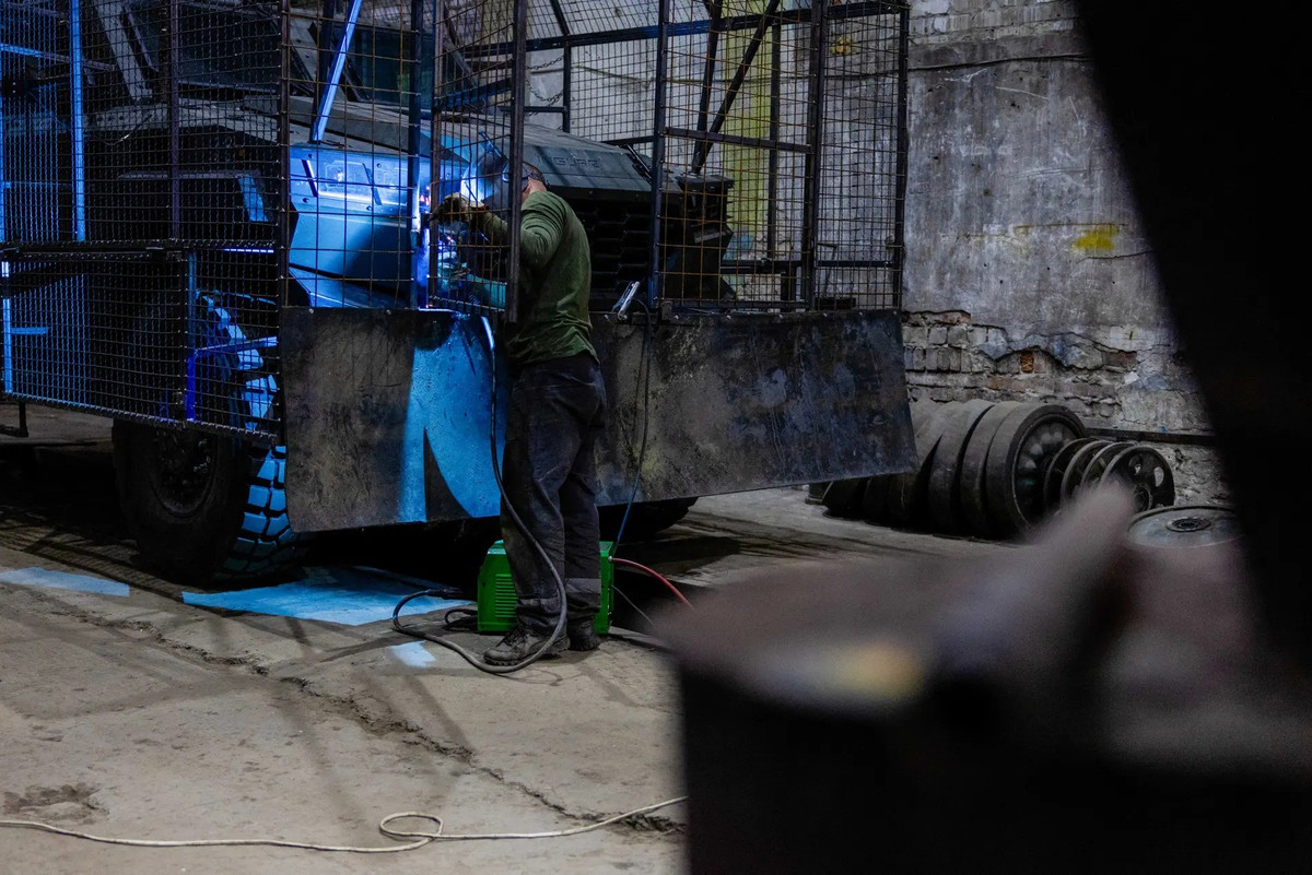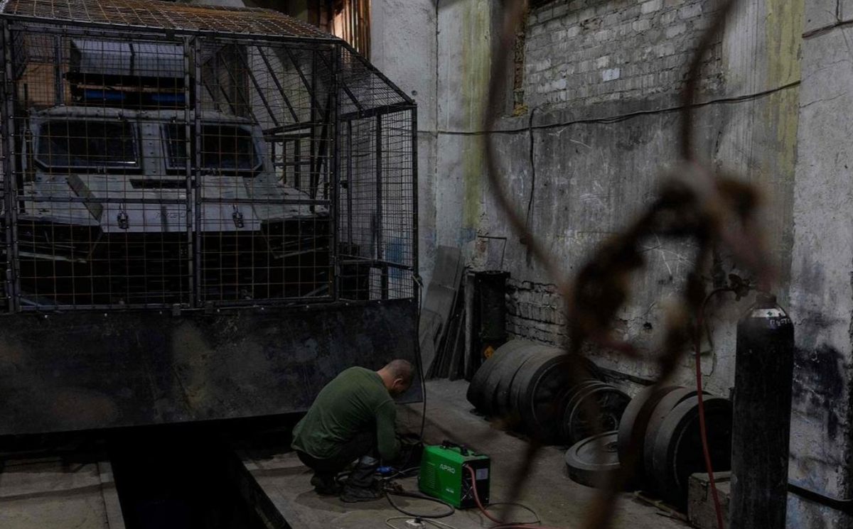 Theo báo cáo của Militarnyi, những chiếc xe bọc thép chiến đấu Inguar-3 do Inguar Defence sản xuất lần đầu tiên được phát hiện cùng Lữ đoàn Slavơ số 18 của Vệ binh Quốc gia Ukraine trong quá trình trang bị thêm lồng chống máy bay không người lái cho phương tiện này. Ảnh: @Tatyana Dzhafarova.