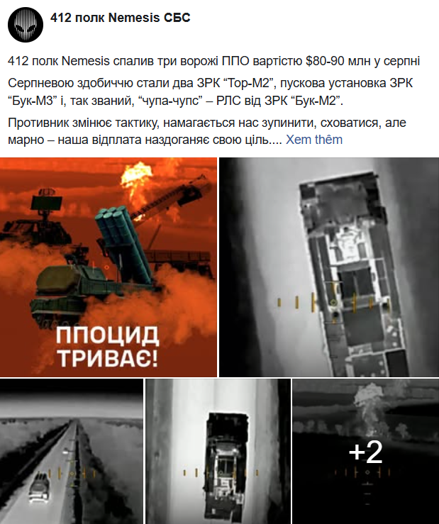 Theo tuyên bố, các nhà điều hành của Lực lượng Trung đoàn Nemesis 412 đã phá hủy ba hệ thống phòng không của Nga trị giá ước tính lên tới 80-90 triệu đô la. Ảnh: @Trung đoàn Nemesis 412 của Ukraine.