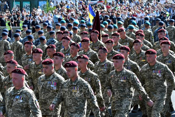 Binh sĩ Ukraine tại lễ diễu binh ở Kiev. Ảnh tư liệu: AFP/TTXVN