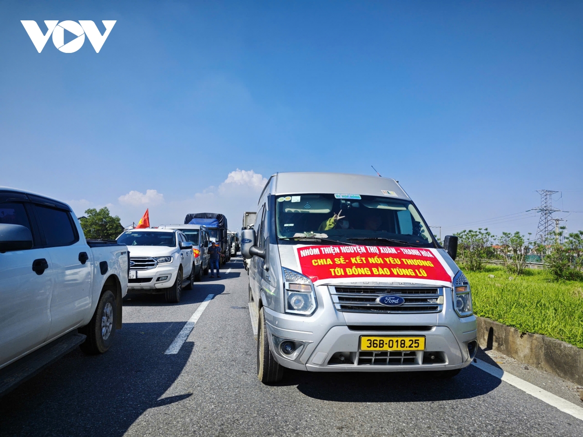 Trong dòng xe đó có rất nhiều đoàn thuộc nhóm thiện nguyện hướng về đồng bào Thái Nguyên