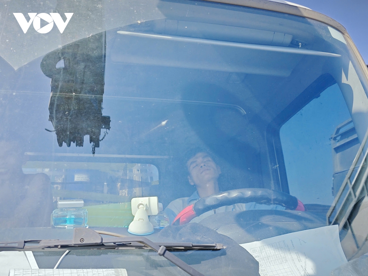 Một tài xế "đánh" giấc ngủ tạm trong lúc chờ thông xe