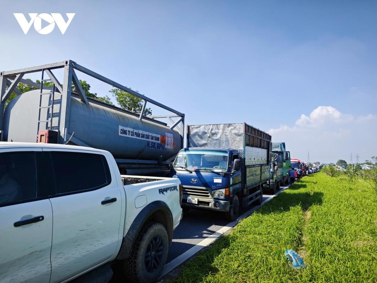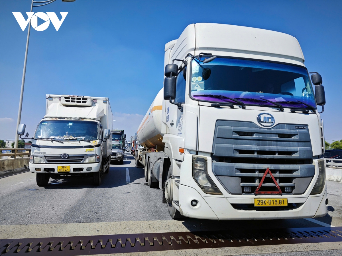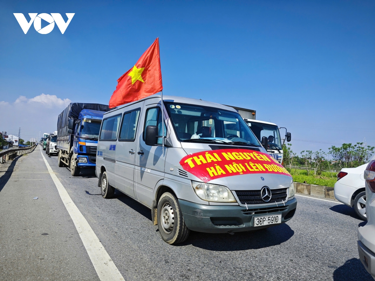 Theo hướng Thái Nguyên - Hà Nội, dòng xe xếp hàng dài 3-4 km