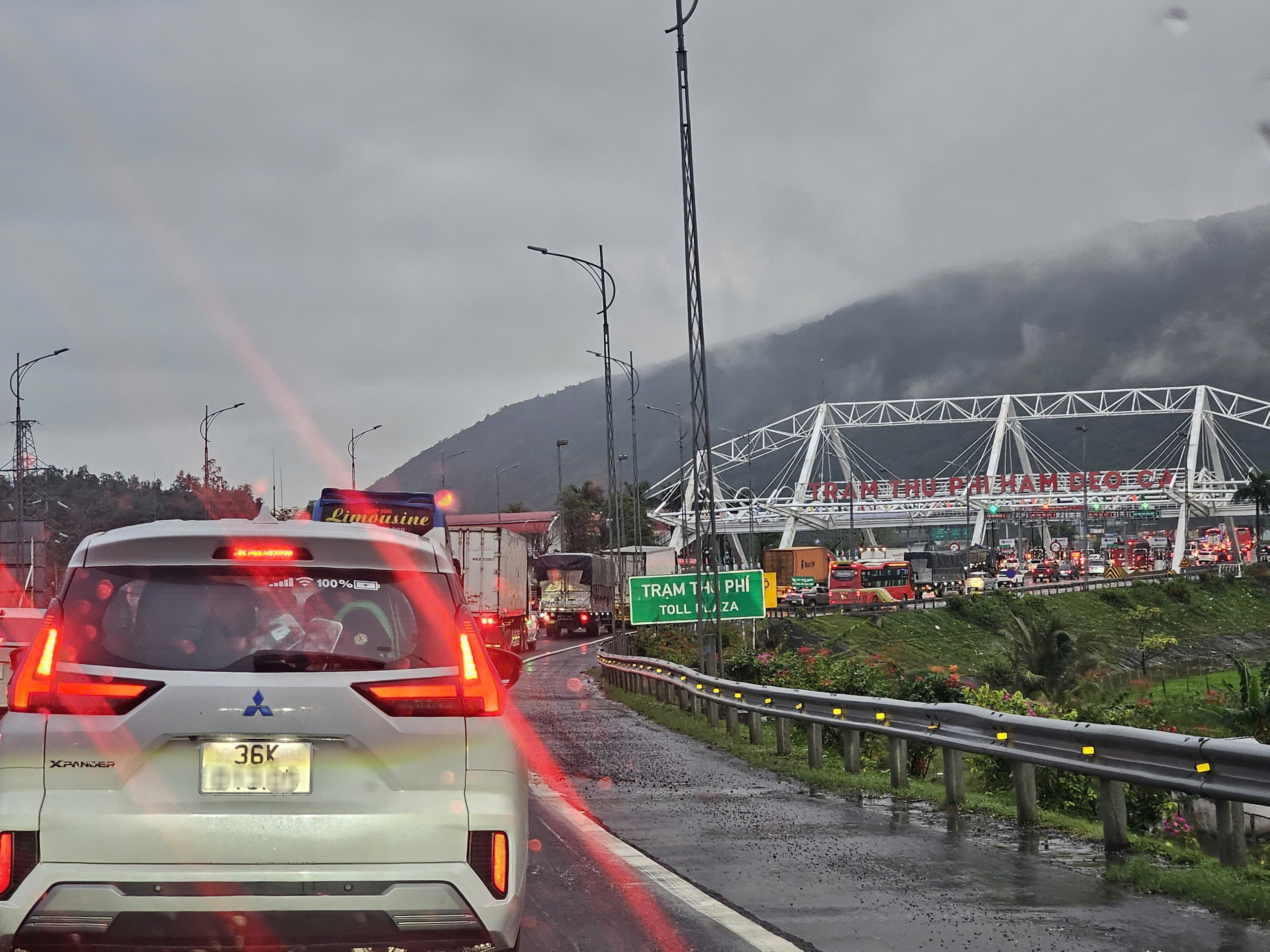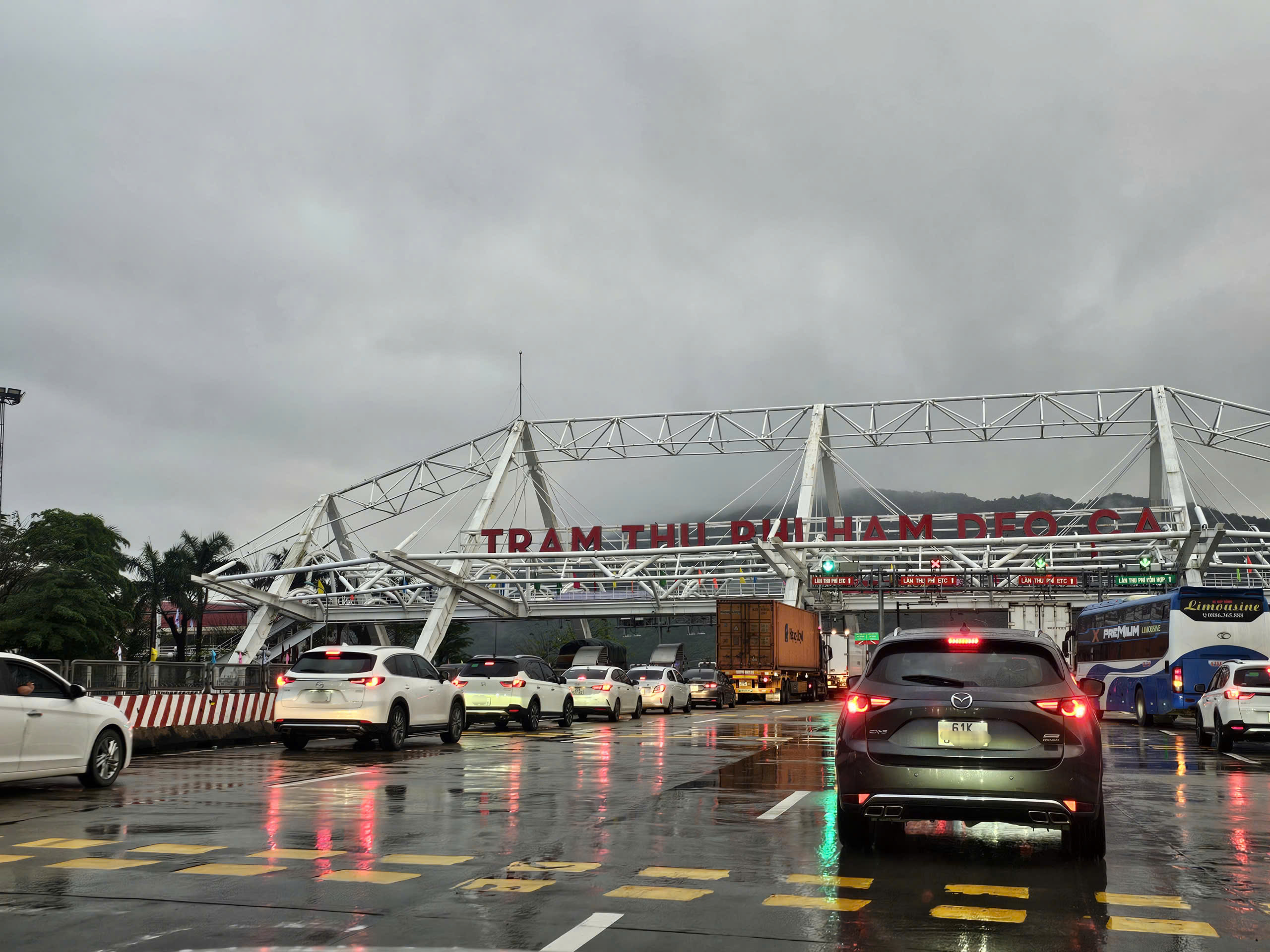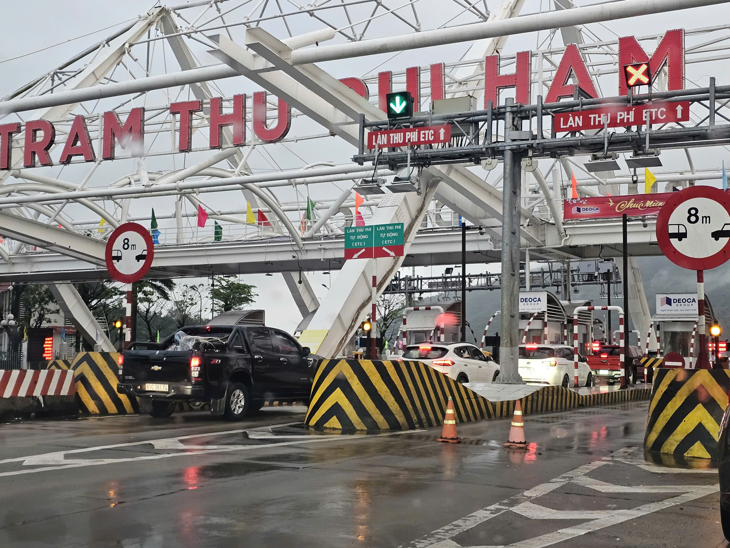Các phương tiện nối đuôi qua trạm thu phí hầm Đèo Cả. Ảnh: HOÀNG SAO