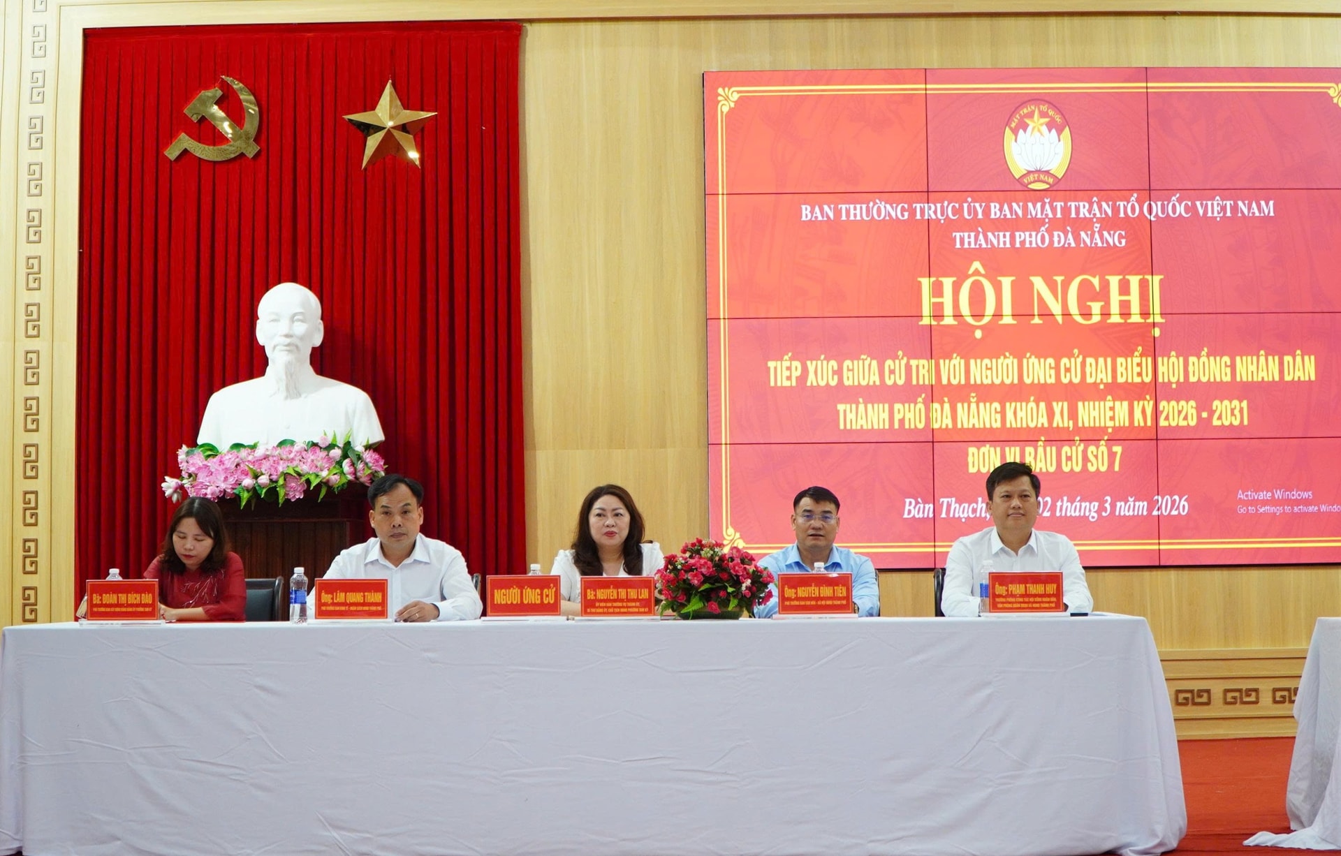 Tham gia buổi tiếp xúc cử tri có 5 ứng cử viên đại biểu HĐND thành phố Đà Nẵng khóa XI thuộc Đơn vị bầu cử số 7, gồm: bà Nguyễn Thị Thu Lan, Ủy viên Ban Thường vụ Thành ủy, Bí thư Đảng ủy, Chủ tịch HĐND phường Tam Kỳ; ông Lâm Quang Thành, Phó Trưởng Ban Kinh tế - Ngân sách, HĐND thành phố; ông Nguyễn Đình Tiên, Phó Trưởng Ban Văn hóa - Xã hội, HĐND thành phố; ông Phạm Thanh Huy, Trưởng phòng Công tác HĐND, Văn phòng Đoàn Đại biểu Quốc hội và HĐND thành phố và bà Đoàn Thị Bích Đào, Phó Trưởng Ban Xây dựng Đảng, Đảng ủy phường Tam Kỳ.