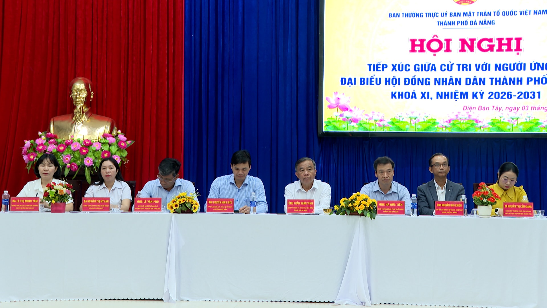 Tại hội nghị, cử tri nghe tiểu sử tóm tắt của các ứng cử viên Đơn vị bầu cử số 8, gồm: Phó Chủ tịch HĐND thành phố Trần Xuân Vinh; Phó Chủ tịch Ủy ban MTTQ Việt Nam thành phố, Chủ tịch Hội Nông dân thành phố Lê Thị Minh Tâm; Phó Trưởng ban Pháp chế HĐND thành phố Hà Đức Tiến; Chủ tịch Liên hiệp các Hội Văn học - Nghệ thuật thành phố Nguyễn Nho Khiêm; Phó Trưởng ban Công tác nông dân, Cơ quan Ủy ban MTTQ Việt Nam thành phố Lê Văn Phú; Bí thư Đảng ủy, Chủ tịch HĐND phường Điện Bàn Nguyễn Minh Hiếu; Công chức Văn phòng Đoàn ĐBQH và HĐND thành phố Nguyễn Thị Mỹ Ánh và giáo viên Trường THCS Chu Văn An, Phó Chủ tịch Hội Văn học thành phố Nguyễn Thị Cẩm Giang.