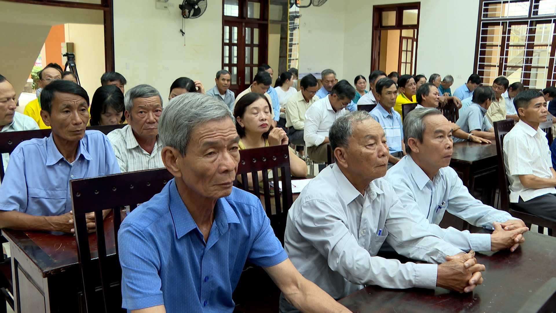 Cử tri xã Điện Bàn Tây nghe các ứng cử viên trình bày chương trình hành động. Ảnh: ANH QUÂN