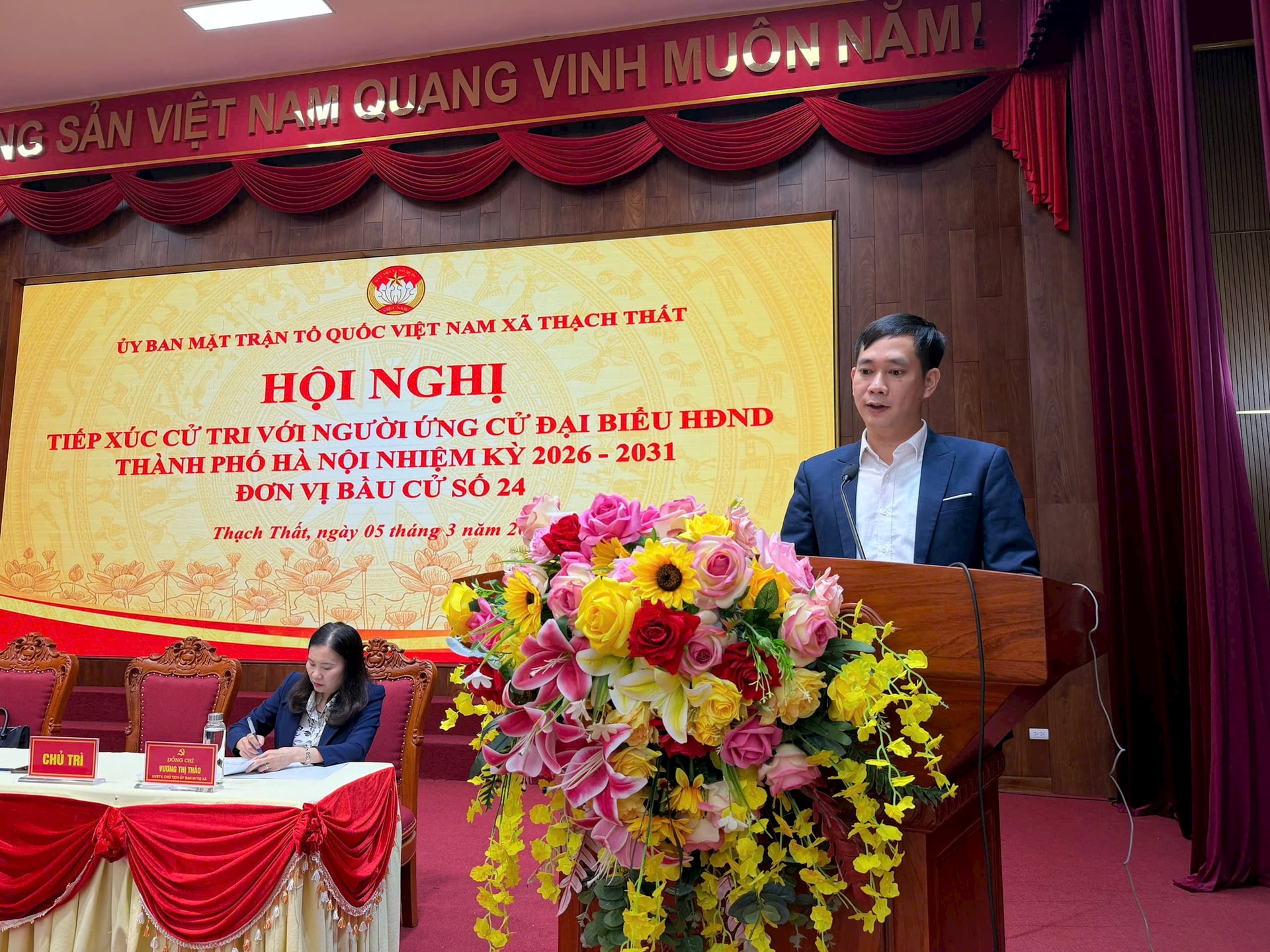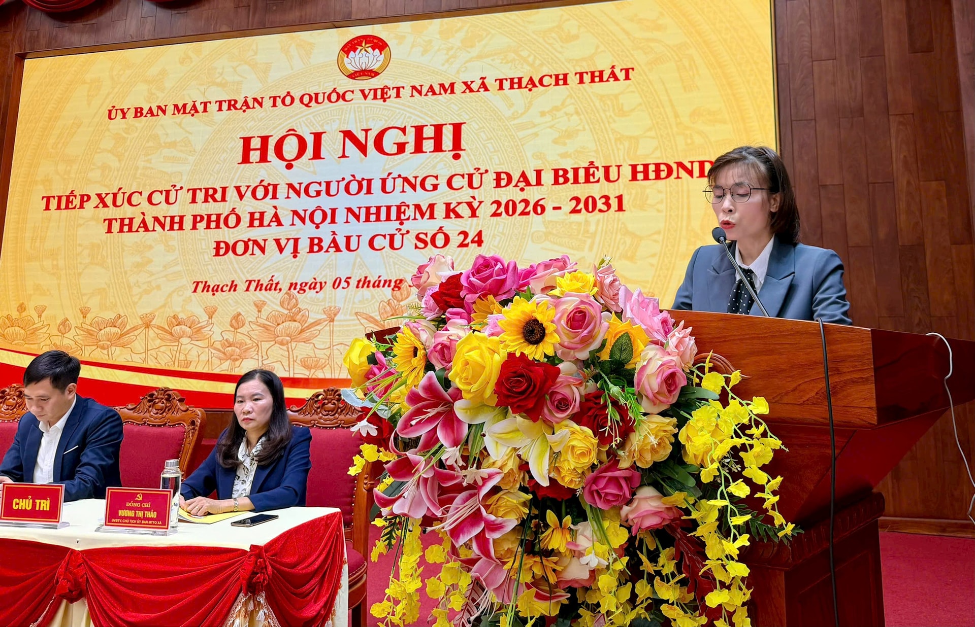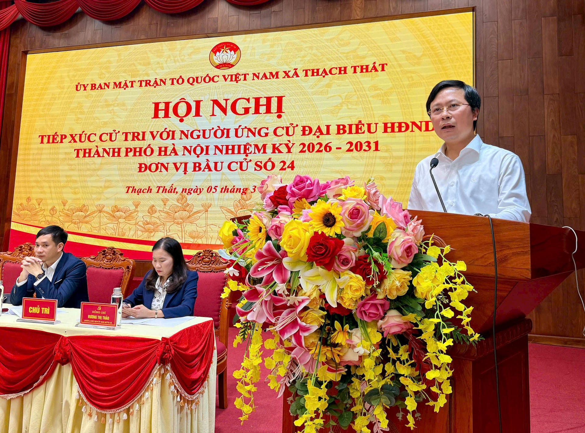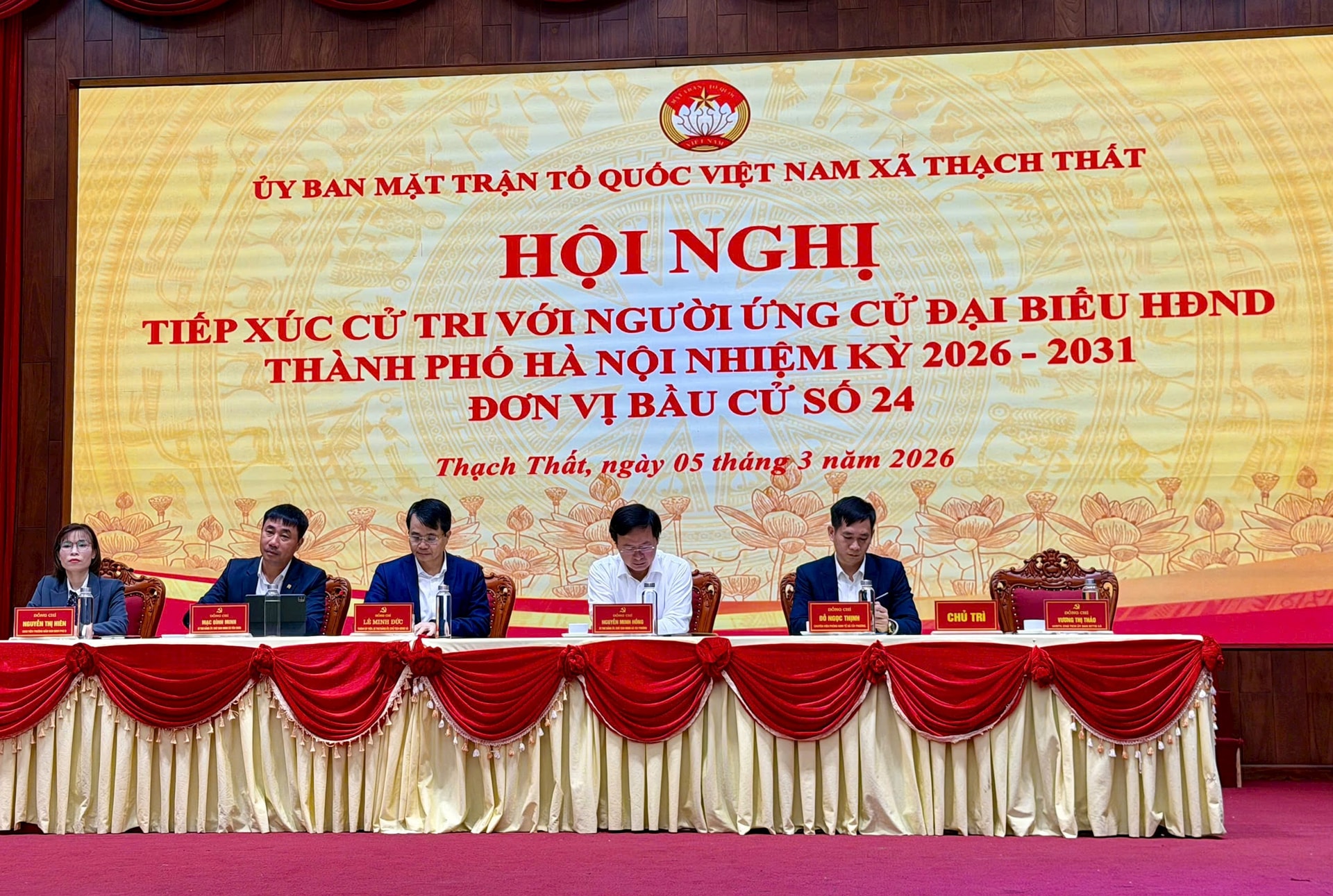 5 ứng cử viên đại biểu HĐND thành phố Hà Nội khóa XVII nhiệm kỳ 2026-2031 đã tiếp xúc cử tri tại đơn vị bầu cử số 24. Hội nghị được tổ chức trực tiếp tại trụ sở xã Thạch Thất, đồng thời kết nối trực tuyến tới các điểm cầu tại các xã: Hạ Bằng, Tây Phương, Hòa Lạc, Yên Xuân.