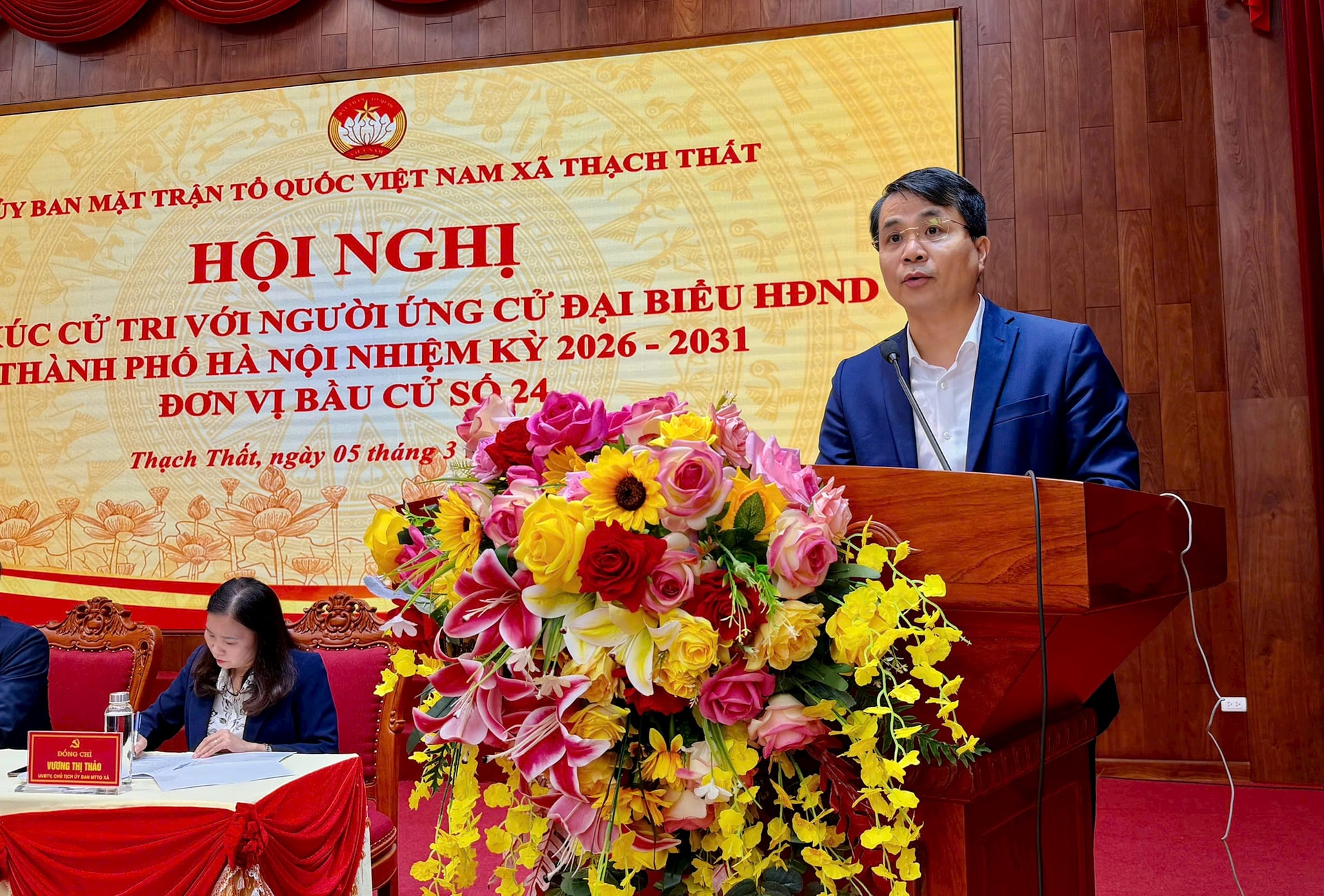 Các ứng cử viên gồm các ông, bà: Lê Minh Đức, Bí thư Đảng ủy, Chủ tịch HĐND xã Thạch Thất; Nguyễn Thị Hiên, giáo viên Trường Mầm non Bình Phú B (xã Tây Phương); Nguyễn Minh Hồng, Bí thư Đảng ủy, Chủ tịch HĐND xã Tây Phương; Mạc Đình Minh, Bí thư Đảng ủy, Chủ tịch HĐND xã Yên Xuân; Đỗ Ngọc Thịnh, chuyên viên Phòng Kinh tế xã Tây Phương.