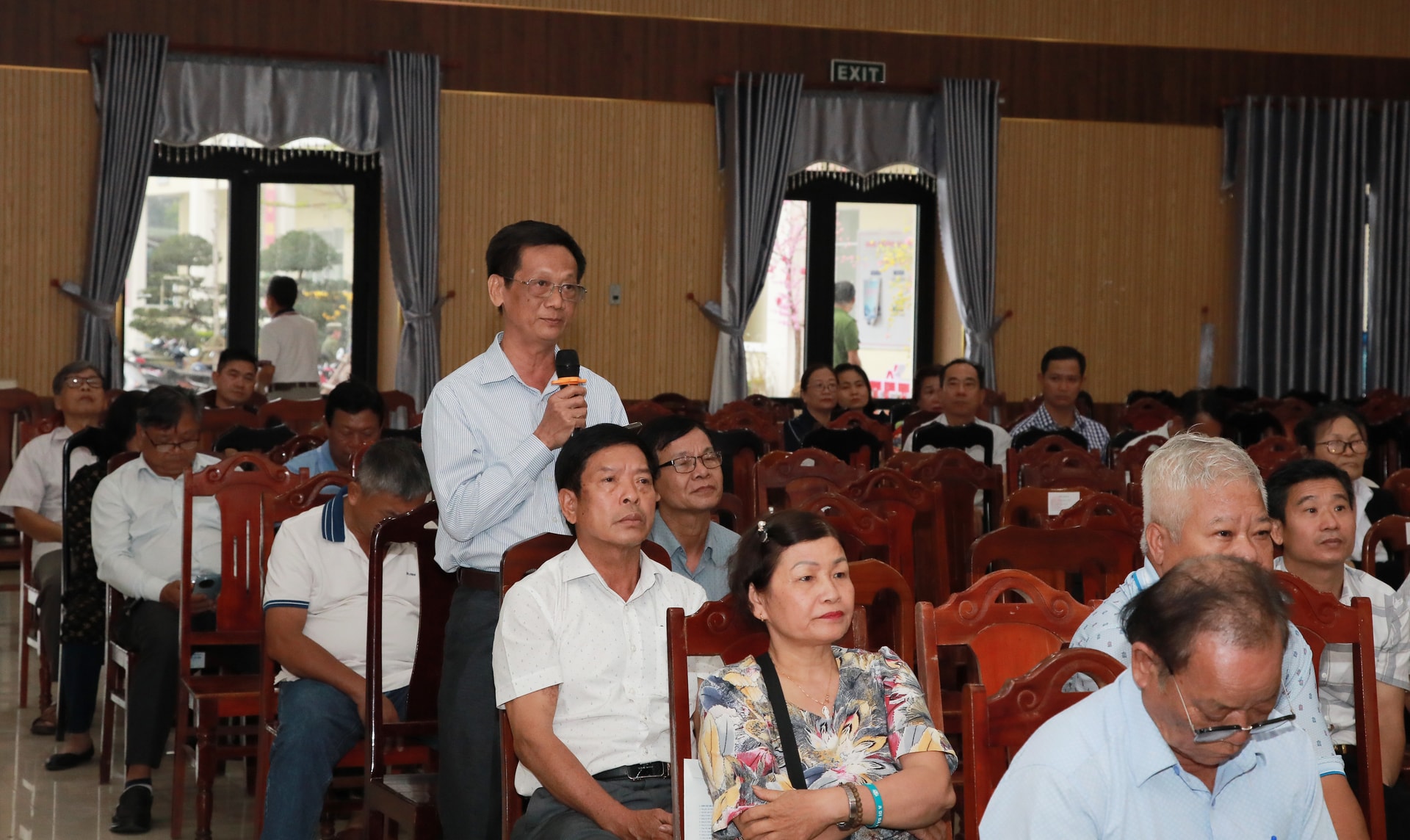 Cử tri phường An Khê trao đổi ý kiến tại buổi tiếp xúc. Ảnh: ĐẮC MẠNH