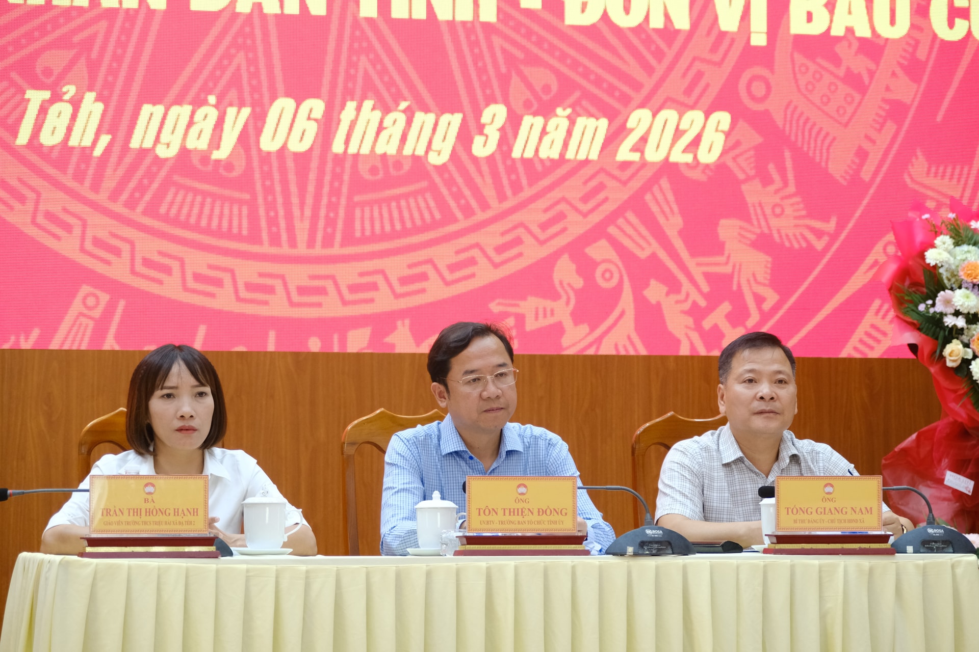 Tham gia tiếp xúc cử tri có các ứng cử viên gồm các ông, bà: Tôn Thiện Đồng, Ủy viên Ban Thường vụ Tỉnh ủy, Trưởng Ban Tổ chức Tỉnh ủy; Trần Thị Hồng Hạnh, Giáo viên Trường THCS Triệu Hải, xã Đạ Tẻh 2; Tống Giang Nam, Bí thư Đảng ủy, Chủ tịch HĐND xã Đạ Tẻh.