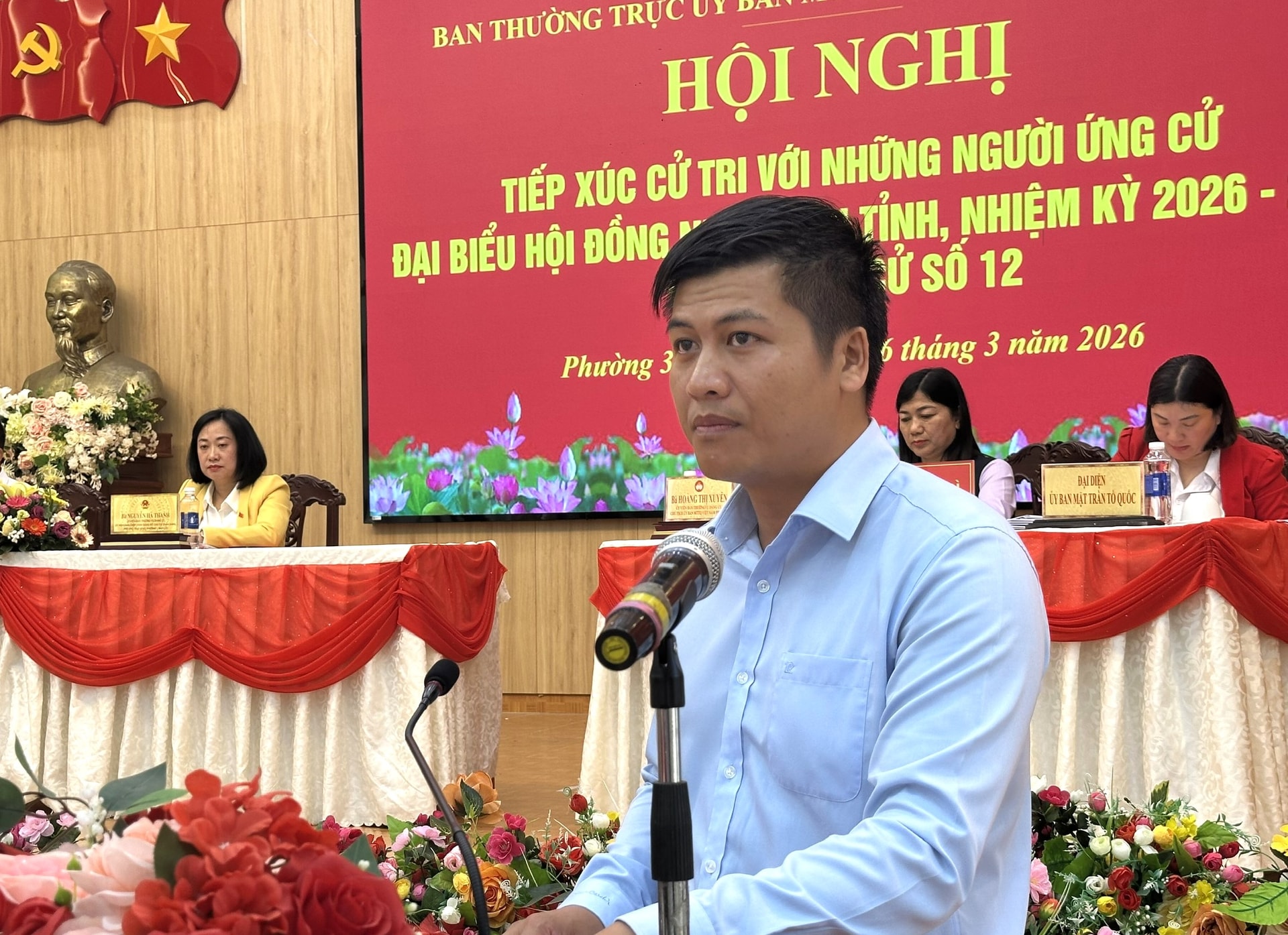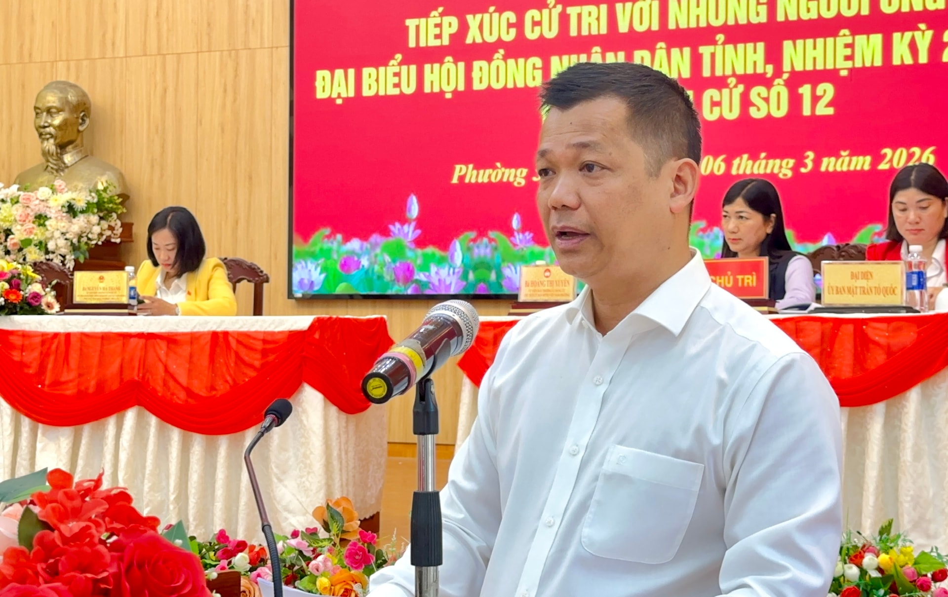 Tại hội nghị, cử tri được nghe báo cáo tóm tắt tiểu sử của các ứng cử viên tham gia ứng cử đại biểu HĐND tỉnh tại Đơn vị bầu cử số 12 và nghe từng ứng cử viên trình bày chương trình hành động, nêu rõ mục tiêu, phương hướng công tác và những nội dung trọng tâm nếu được cử tri tín nhiệm bầu làm đại biểu HĐND.