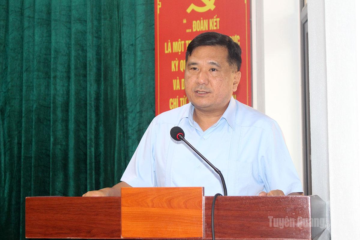Đồng chí Trưởng Ban Tuyên giáo và Dân vận Tỉnh ủy Trần Mạnh Lợi phát biểu tại buổi tiếp xúc cư tri xã Quang Bình.