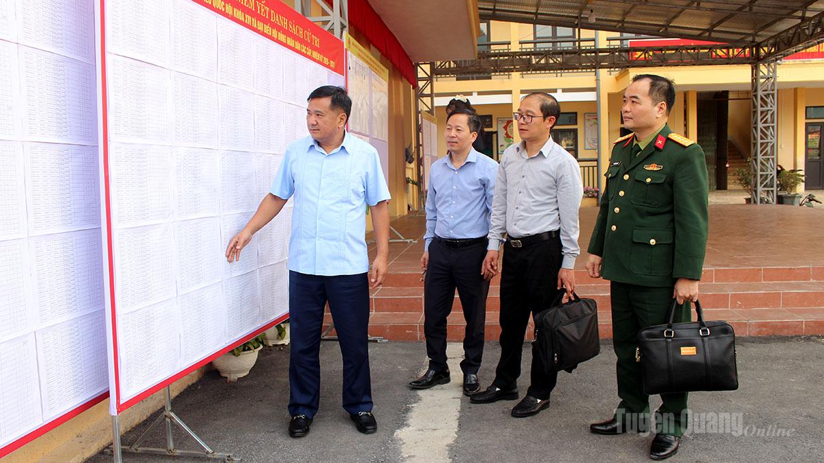 Đồng chí Hầu Minh Lợi, Ủy viên BTV Tỉnh ủy, Phó Chủ tịch Thường trực HĐND tỉnh kiểm tra công tác bầu cử tại xã Sủng Máng.