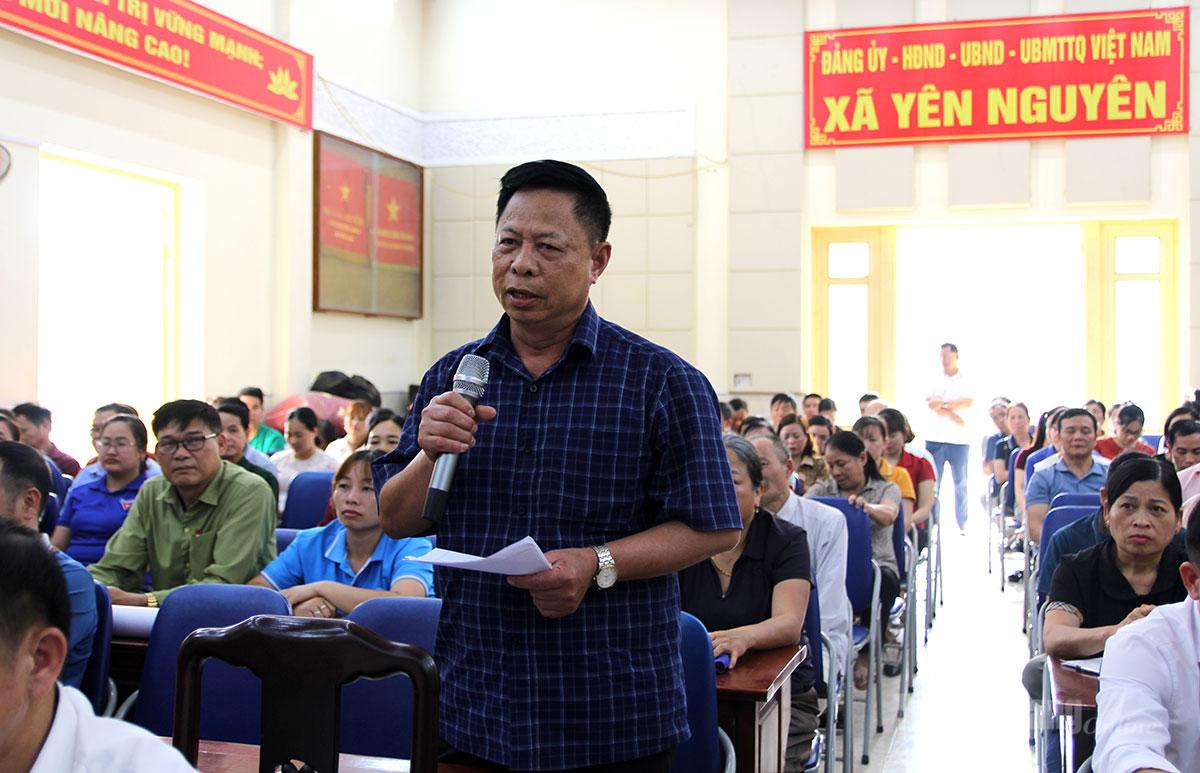 Cử tri thôn Đồng Vàng, xã Yên Nguyên phát biểu ý kiến.