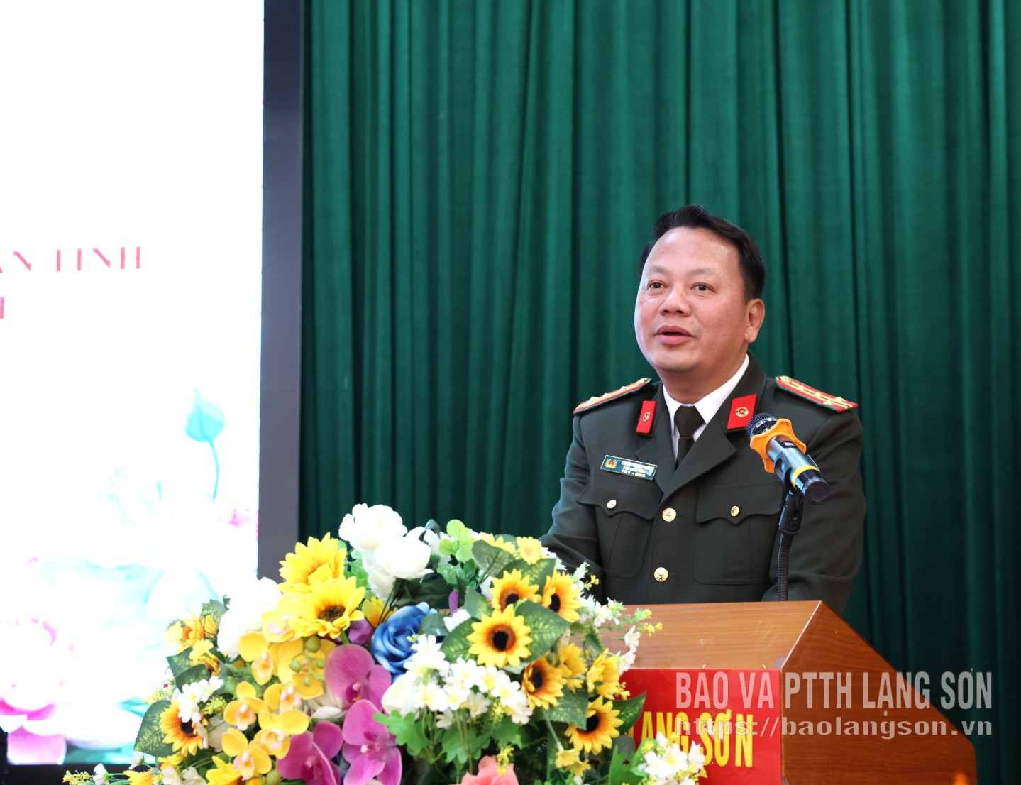 Đại tá Triệu Tuấn Hải, Phó Giám đốc Công an tỉnh trình bày chương trình hành động tại hội nghị