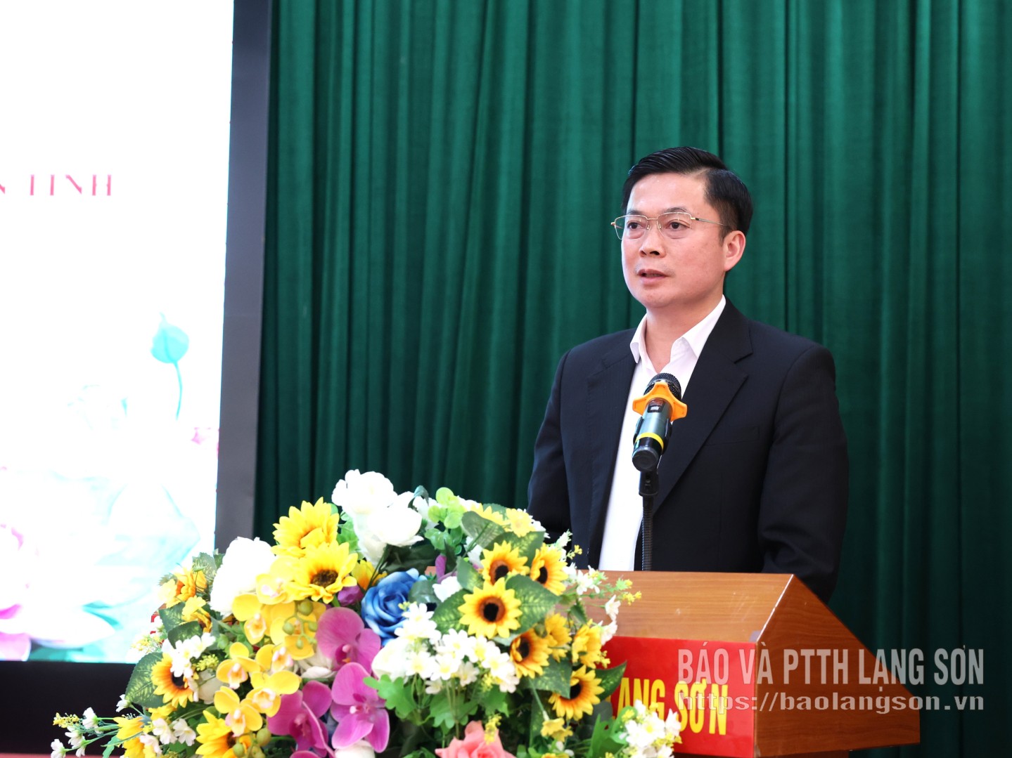 Ông Nguyễn Quang Huy, Tỉnh ủy viên, Giám đốc Sở Khoa học và Công nghệ trình bày chương trình hành động tại hội nghị
