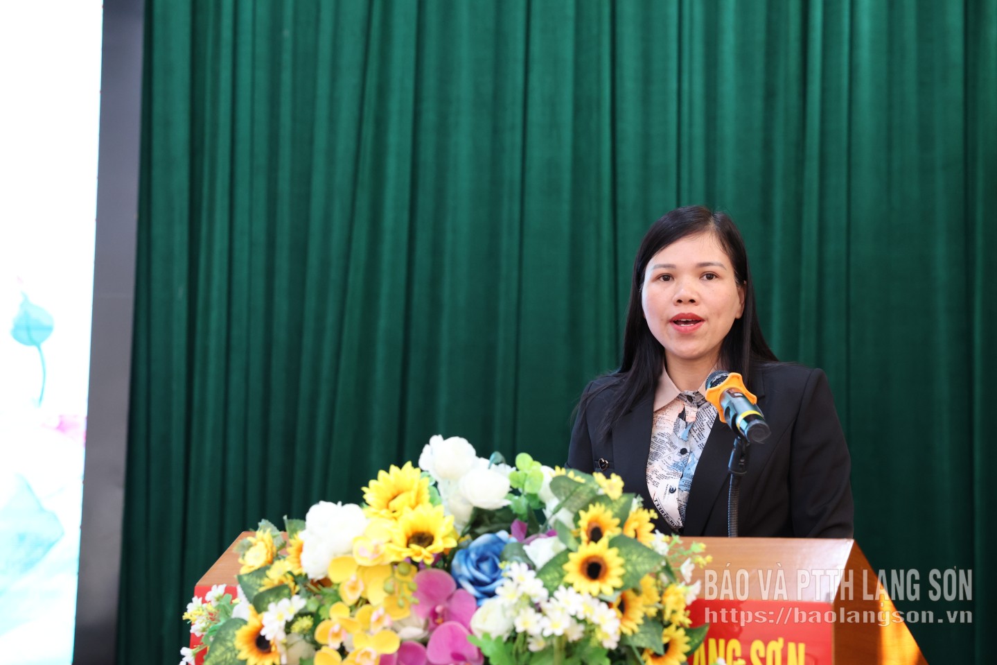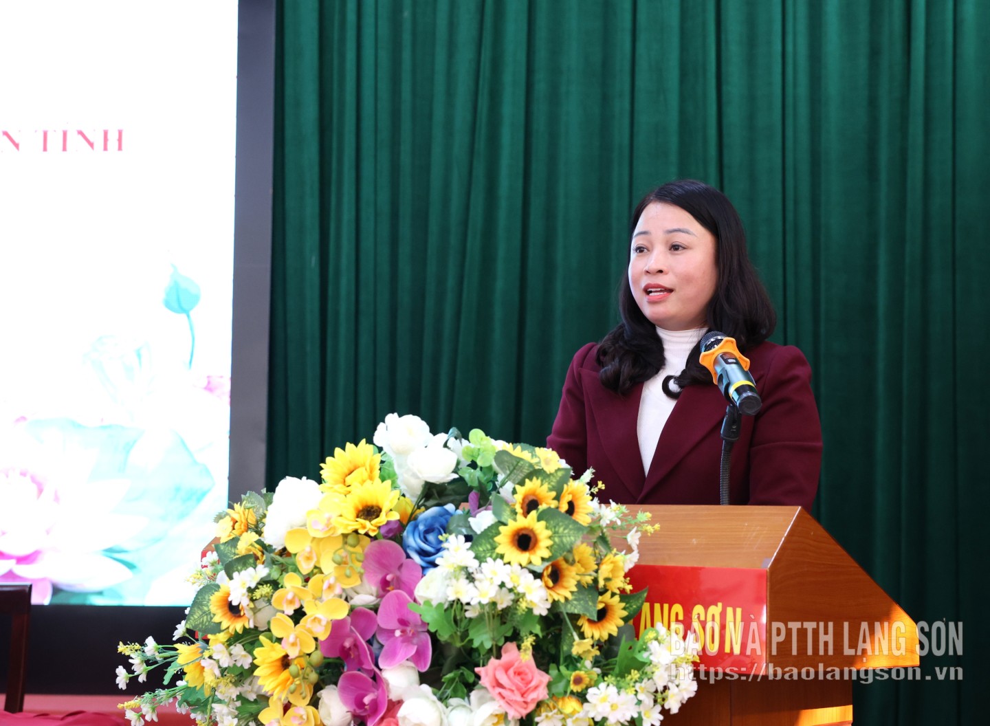 Bà Nguyễn Thị Hồng Vân, Tỉnh ủy viên, Phó Chủ tịch Ủy ban MTTQ Việt Nam tỉnh, Chủ tịch Hội Liên hiệp Phụ nữ tỉnh trình bày chương trình hành động tại hội nghị