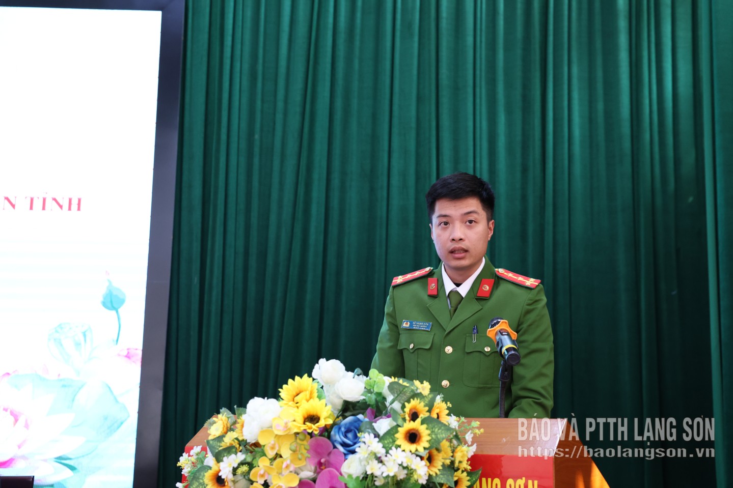 Ông Vũ Trung Kiên, Phó đội trưởng Đội cảnh sát cơ động, Công an tỉnh trình bày chương trình hành động tại hội nghị