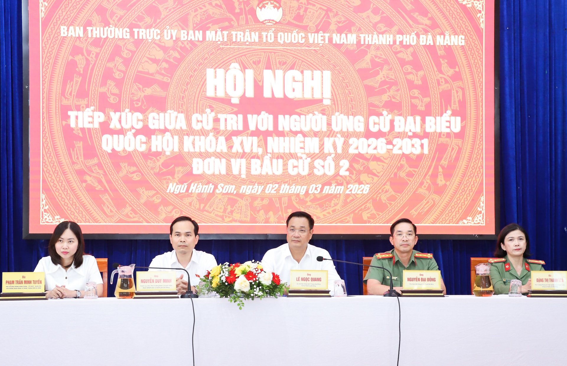 Tại Đơn vị bầu cử số 2, các ứng cử viên đại biểu Quốc hội khóa XVI, nhiệm kỳ 2026 - 2031, bao gồm: Ủy viên Trung ương Đảng, Bí thư Thành ủy Đà Nẵng Lê Ngọc Quang; Phó Trưởng đoàn chuyên trách Đoàn Đại biểu Quốc hội đơn vị thành phố Đà Nẵng Nguyễn Duy Minh; Đại tá, Phó Giám đốc Công an thành phố Đà Nẵng Nguyễn Đại Đồng; Phó Trưởng phòng Hành chính - Tổ chức - Quản trị, Văn phòng Đoàn ĐBQH và HĐND thành phố Đà Nẵng Phạm Trần Minh Tuyến; cùng Phó Trưởng phòng Kỹ thuật nghiệp vụ và Ngoại tuyến, Công an thành phố Đà Nẵng Đặng Thị Thanh Trà.