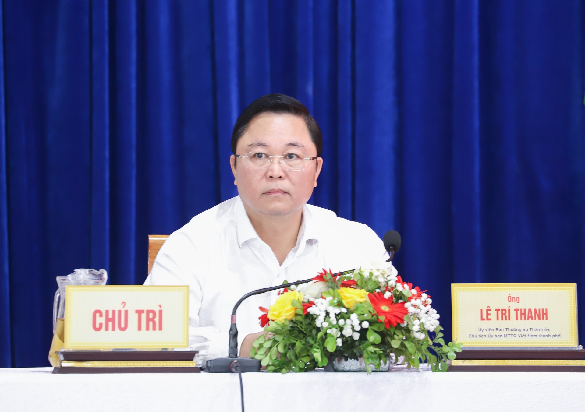 Chủ tịch Ủy ban MTTQ Việt Nam thành phố Lê Trí Thanh chủ trì hội nghị. Ảnh: NGỌC PHÚ