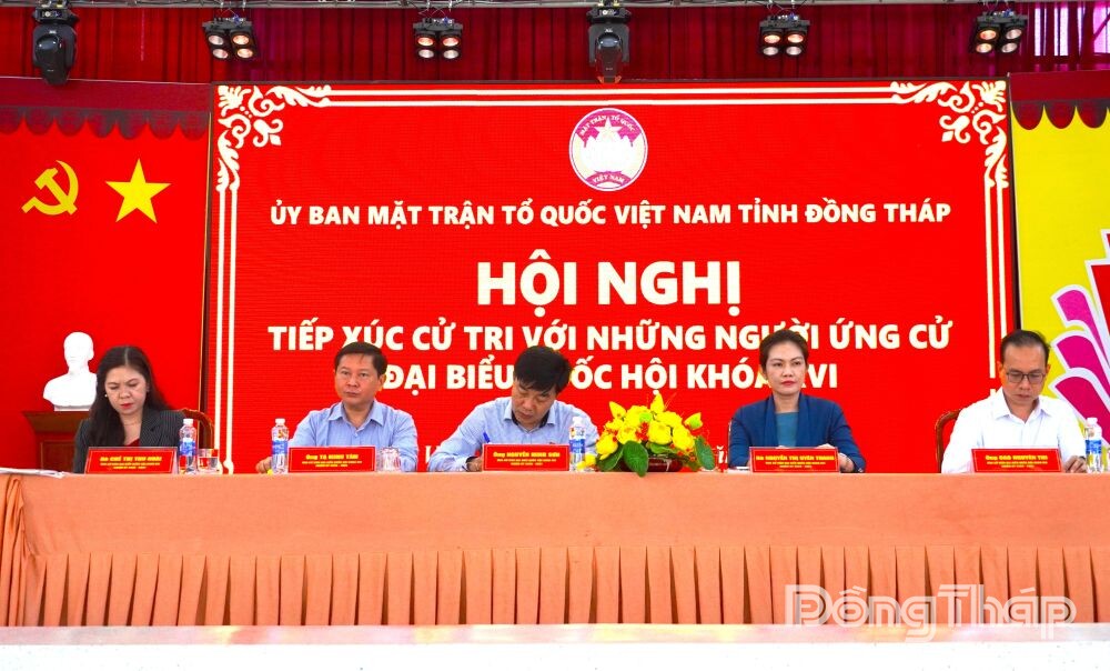 Hội nghị đã thông qua tiểu sử tóm tắt và chương trình hành động của từng ứng cử viên ĐBQH khóa XVI (nhiệm kỳ 2026 - 2031), đơn vị bầu cử số 6, gồm các đồng chí: Nguyễn Minh Sơn, Phó Chủ nhiệm Ủy ban Kinh tế và Tài chính của Quốc hội khóa XV; Tạ Minh Tâm, Phó trưởng Đoàn chuyên trách Đoàn ĐBQH tỉnh Đồng Tháp khóa XV; Nguyễn Thị Uyên Trang, Giám đốc Sở Văn hóa Thể thao và Du lịch tỉnh Đồng Tháp, Ủy viên Ủy ban Văn hóa và Xã hội của Quốc hội khóa XV; Chế Thị Thu Hoài, Nhà báo, Báo và Phát thanh Truyền hình Đồng Tháp; Cao Nguyên Thi, Phó Hiệu trưởng Trường Đại học Tiền Giang.