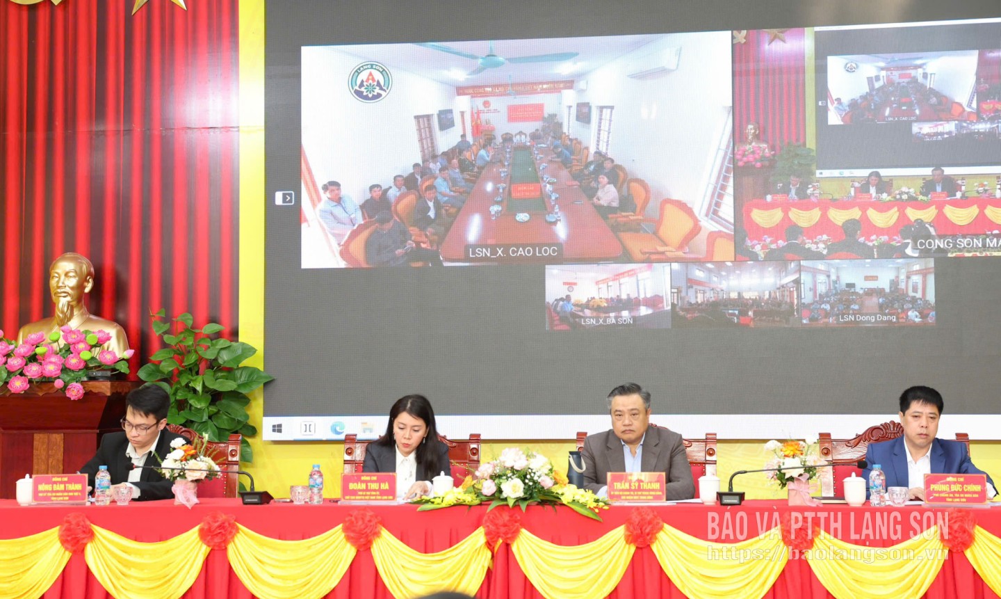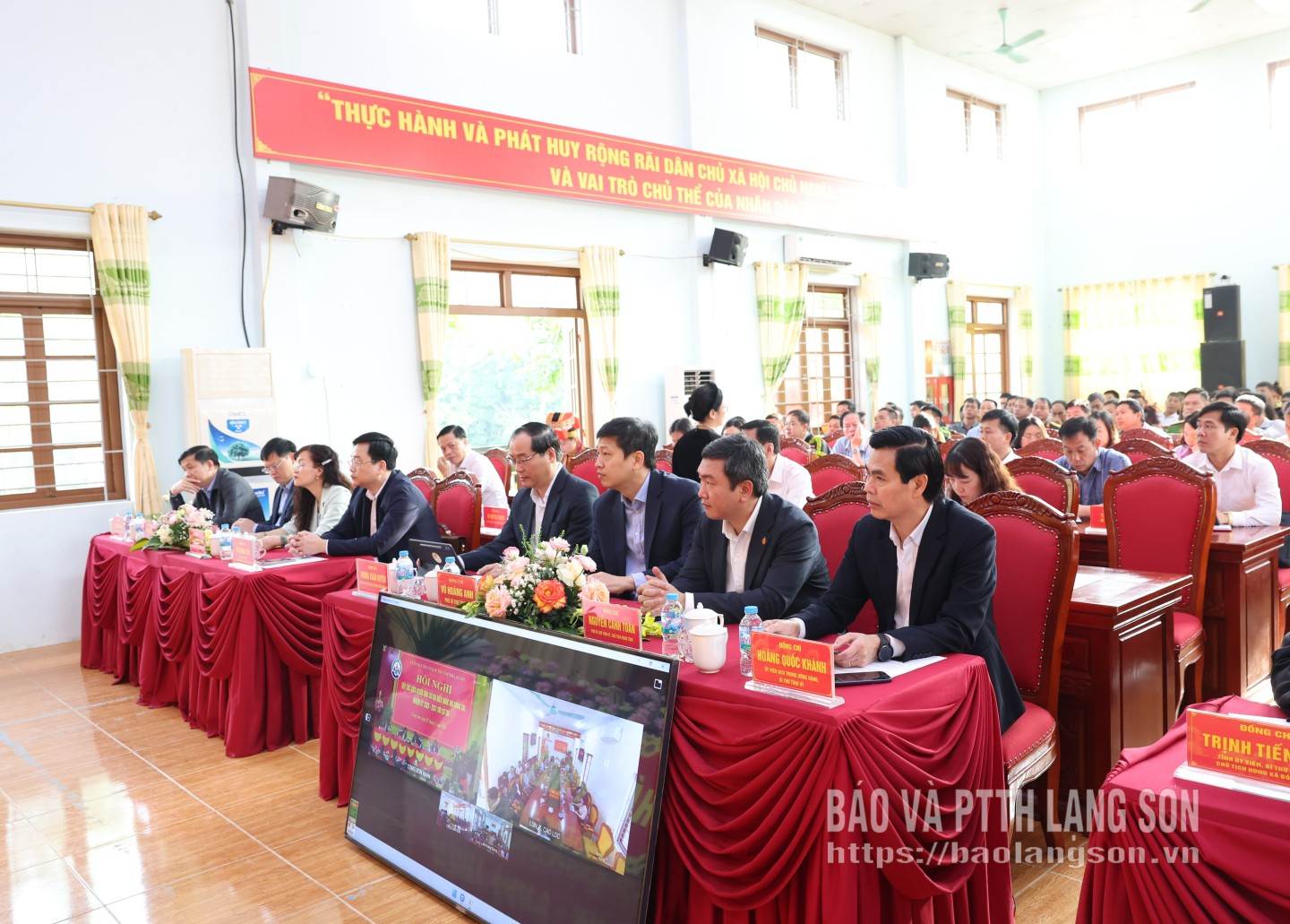 Các đồng chí lãnh đạo tỉnh và đại biểu dự hội nghị tại điểm cầu xã Công Sơn