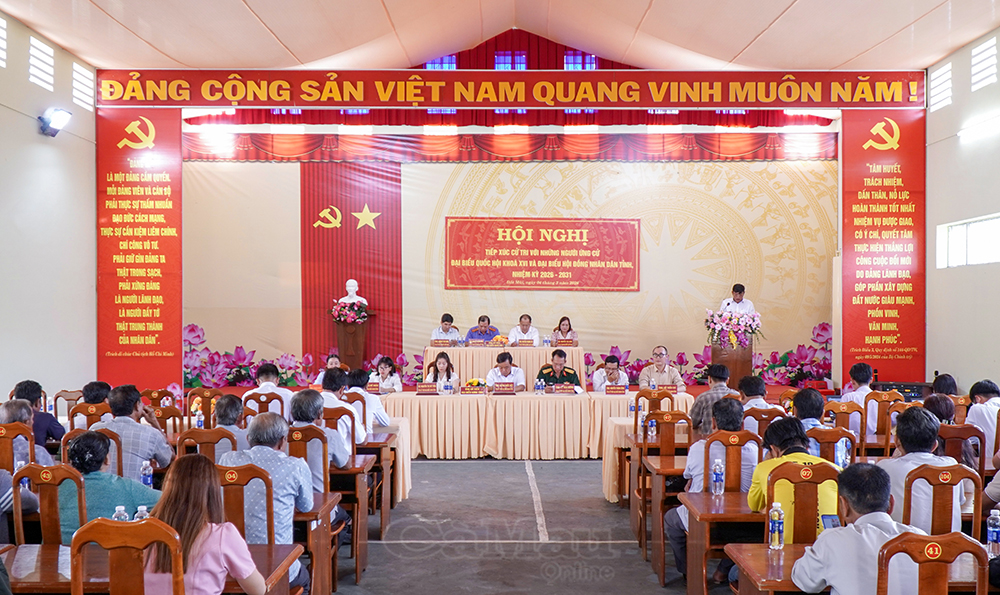 Hội nghị diễn ra trong không khí dân chủ, cởi mở, thể hiện sự quan tâm và kỳ vọng lớn của cử tri địa phương đối với những người ứng cử. Sau phần giới thiệu tóm tắt tiểu sử, các ứng cử viên đã trình bày chương trình hành động, tập trung vào các nội dung như: phát triển kinh tế; đầu tư hạ tầng giao thông nông thôn; nâng cao chất lượng y tế, giáo dục; chăm lo đời sống vật chất, tinh thần cho Nhân dân; giữ vững quốc phòng - an ninh, nhất là khu vực biên giới biển. Các ứng cử viên khẳng định nếu được cử tri tín nhiệm sẽ nỗ lực phát huy năng lực, kinh nghiệm, hoàn thành tốt nhiệm vụ được giao.