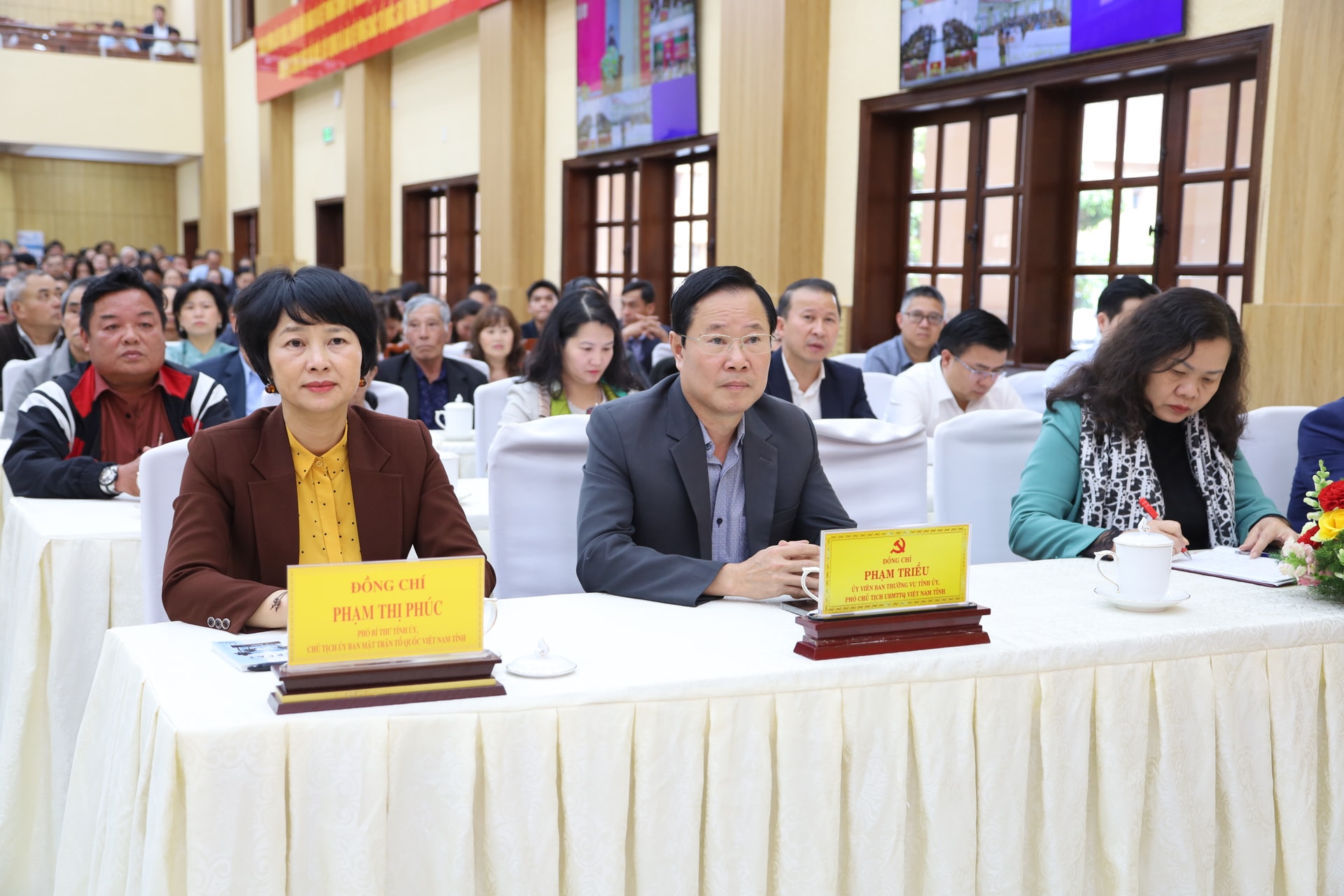 Các đồng chí: Phạm Thị Phúc, Phó Bí thư Tỉnh ủy, Chủ tịch Ủy ban MTTQ Việt Nam tỉnh; Phạm Triều, Ủy viên Ban Thường vụ Tỉnh ủy, Phó Chủ tịch Thường trực Ủy ban MTTQ Việt Nam tỉnh Lâm Đồng cùng các đại biểu tham dự