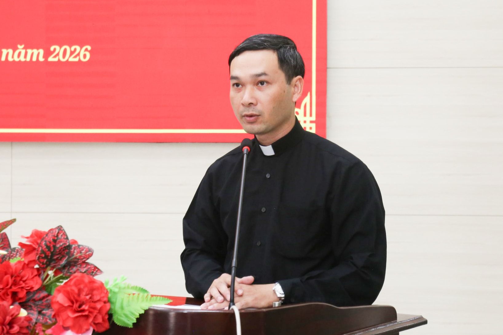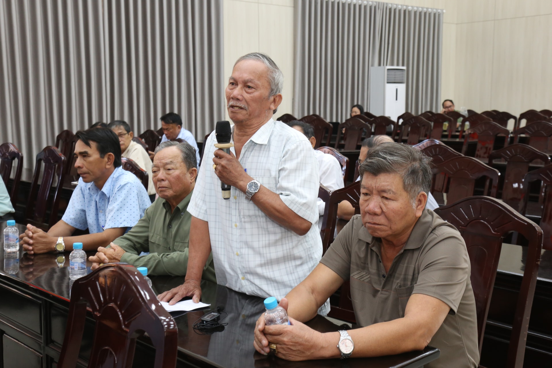 Ứng cử viên Huỳnh Ngọc Liêm trình bày chương trình hành động tại buổi tiếp xúc cử tri