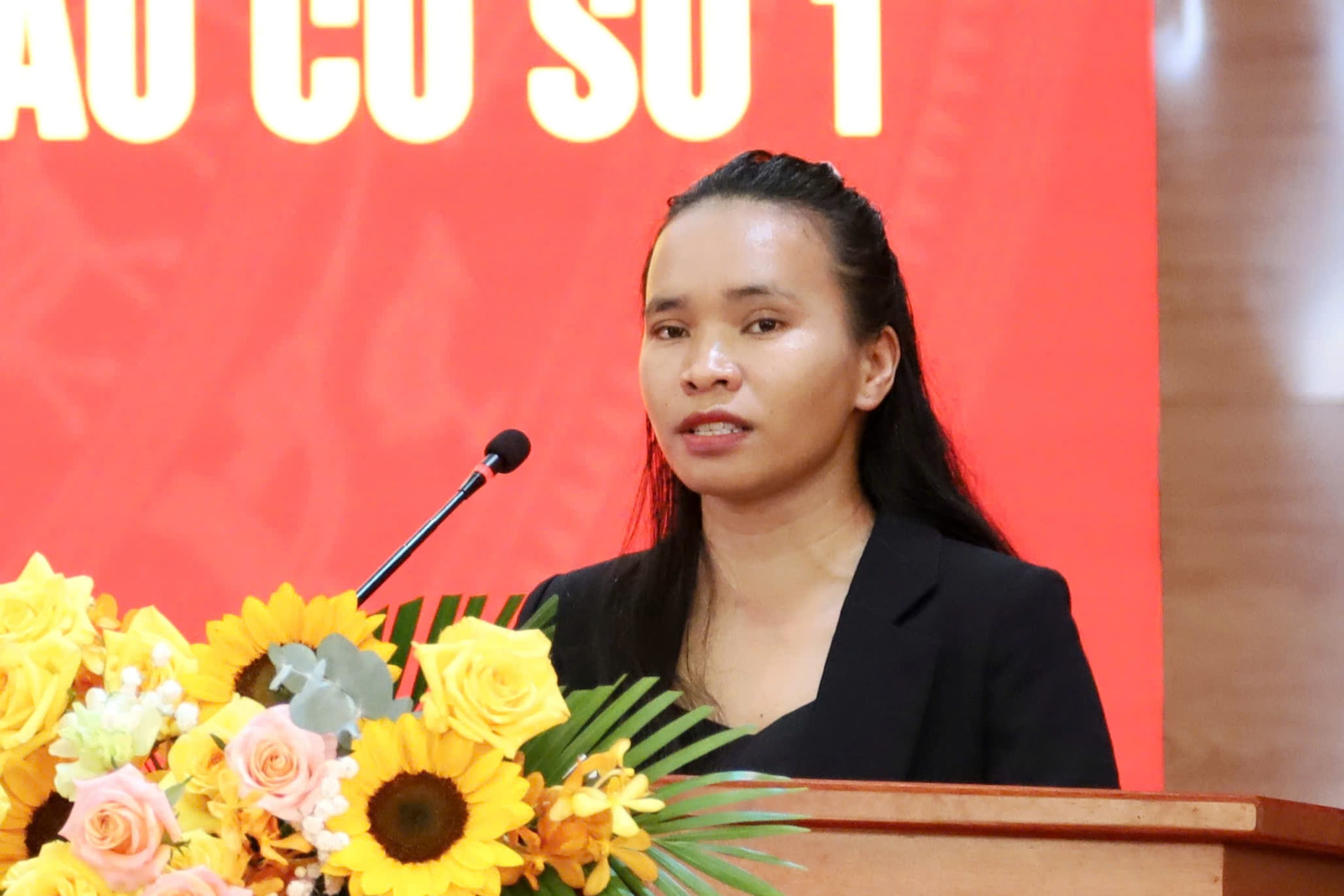 Bà Kơ Să K’Xuân, Phó Bí thư Chi bộ Khoa Điều trị, Bác sĩ phụ trách Khoa Nội - Nhi - Truyền nhiễm, Trung tâm Y tế khu vực Lạc Dương trình bày chương trình hành động trước cử tri