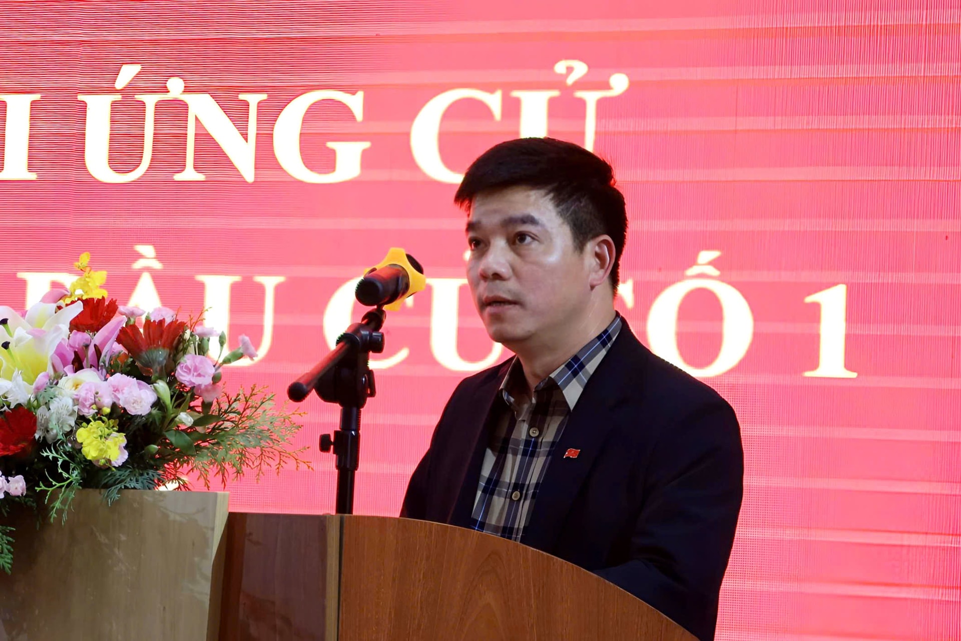Ông Nguyễn Văn Quảng, Bí thư Trung ương Đảng, Bí thư Đảng ủy, Chánh án TAND Tối cao trình bày chương trình hành động trước cử tri