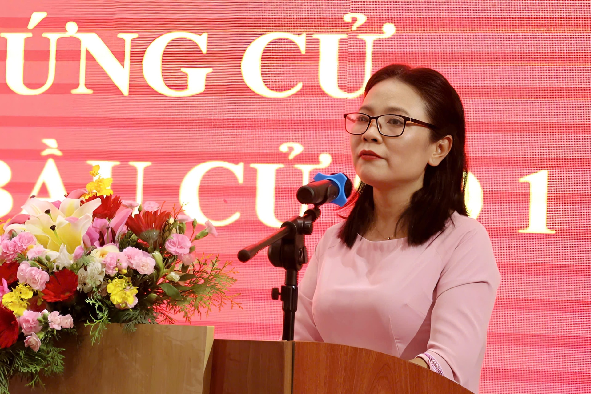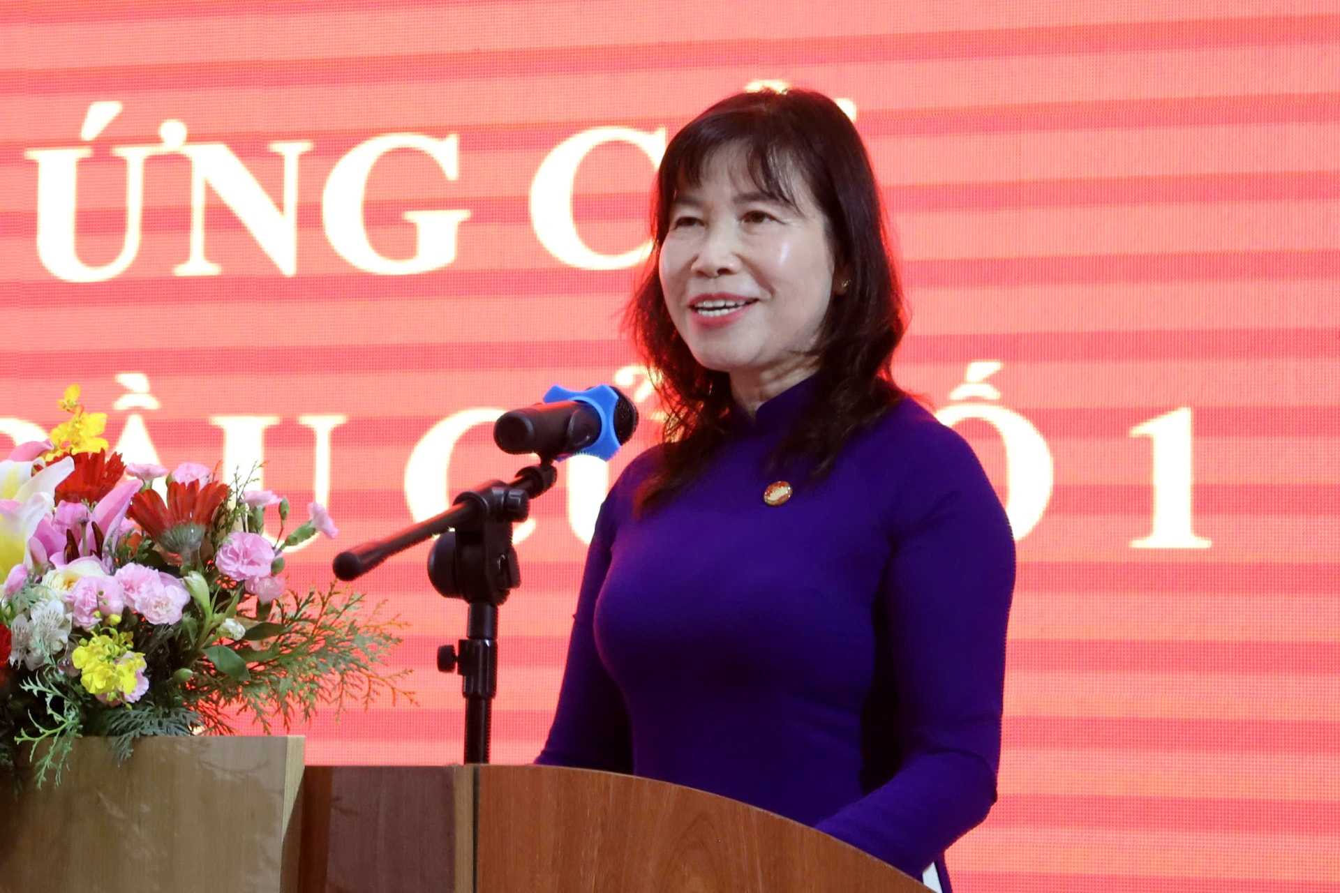 Bà Lư Thái Tuyên, Chi ủy viên, Phó Giám đốc Bảo tàng tỉnh Lâm Đồng trình bày chương trình hành động trước cử tri