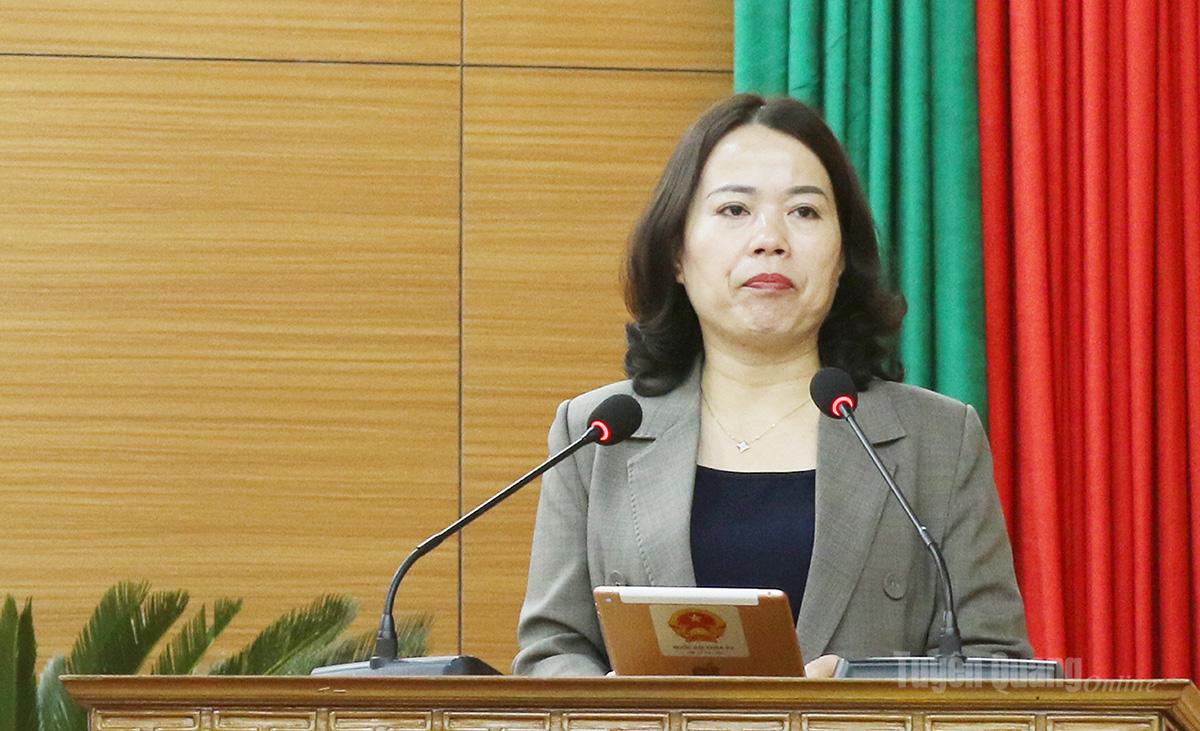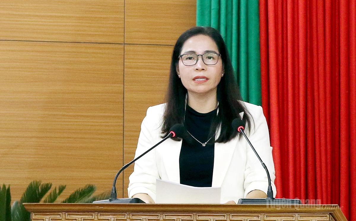 Đồng chí Âu Thị Mai, Ủy viên Ban Chấp hành Đảng bộ tỉnh, Phó Chủ tịch Ủy ban MTTQ tỉnh, Chủ tịch Hội Liên hiệp Phụ nữ tỉnh giới thiệu tóm tắt tiểu sử các ứng cử viên.