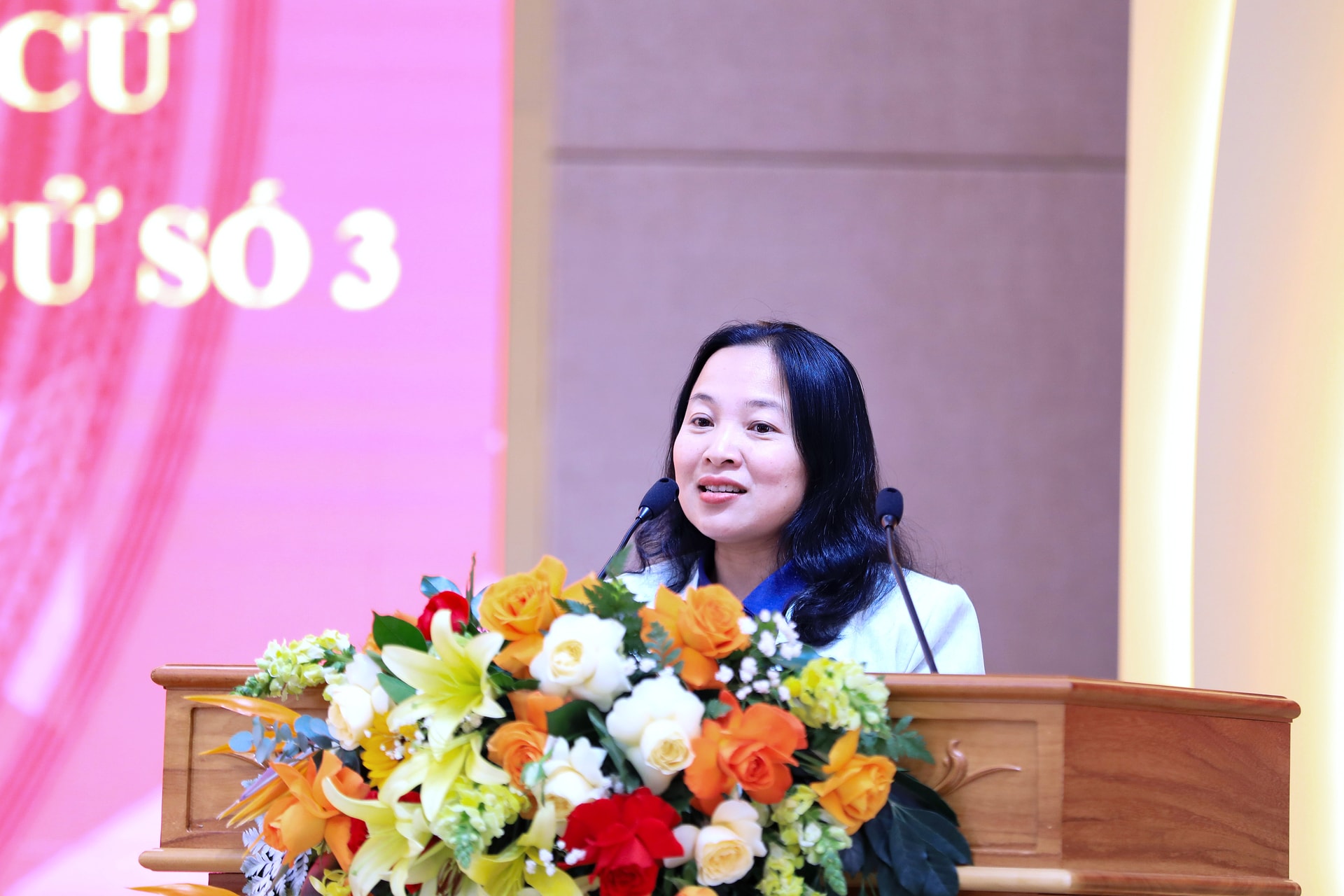 Đơn vị bầu cử số 3 có 5 ứng cử viên, trong đó có Bí thư Tỉnh ủy Lâm Đồng Y Thanh Hà Niê Kđăm (ở giữa ảnh)