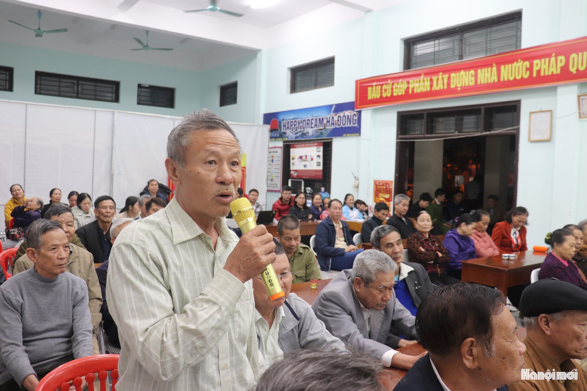 Cử tri phường Phú Lương bày tỏ mong muốn các ứng cử viên đại biểu HĐND phường sau khi trúng cử sẽ thực hiện đúng cam kết với nhân dân. Ảnh: PV