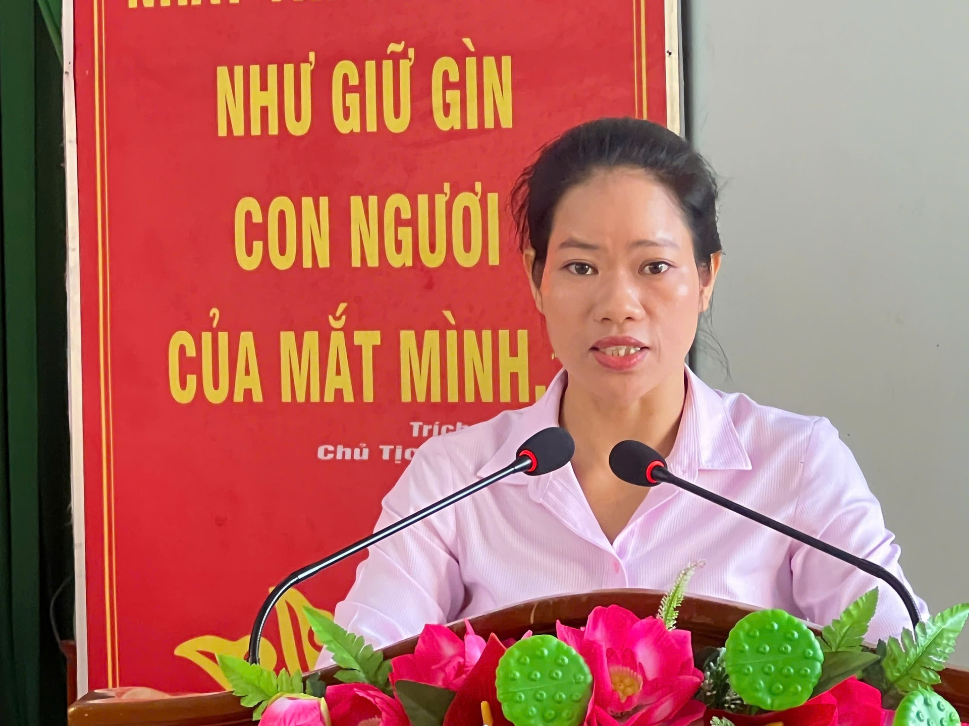 Bà Điểu Thị Prợt, Phó Trưởng Ban Kinh tế - Ngân sách HĐND xã Cát Tiên 3 trình bày chương trình hành động