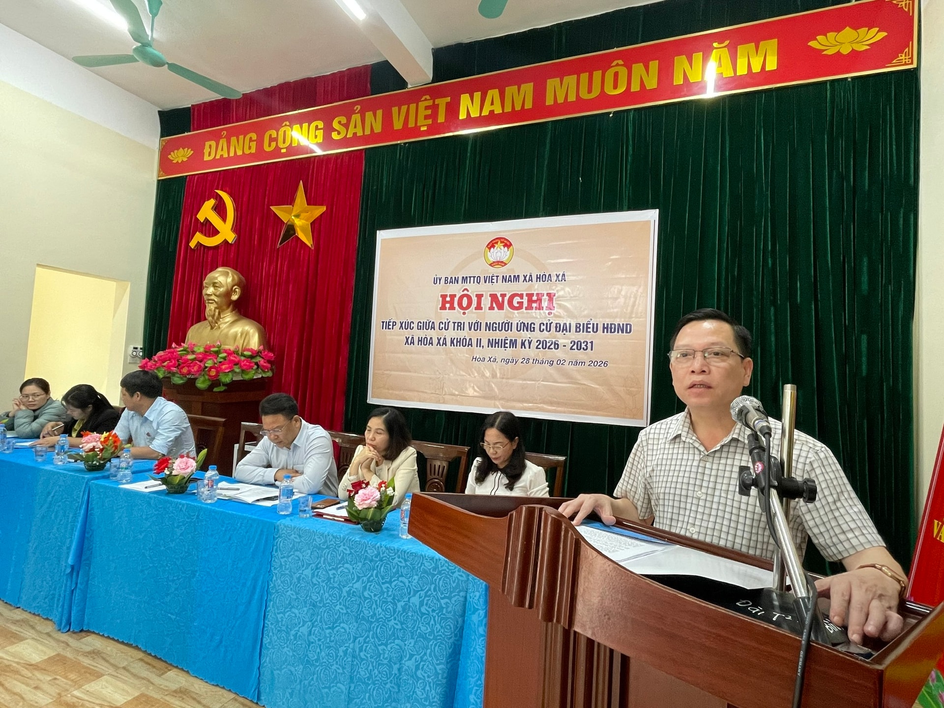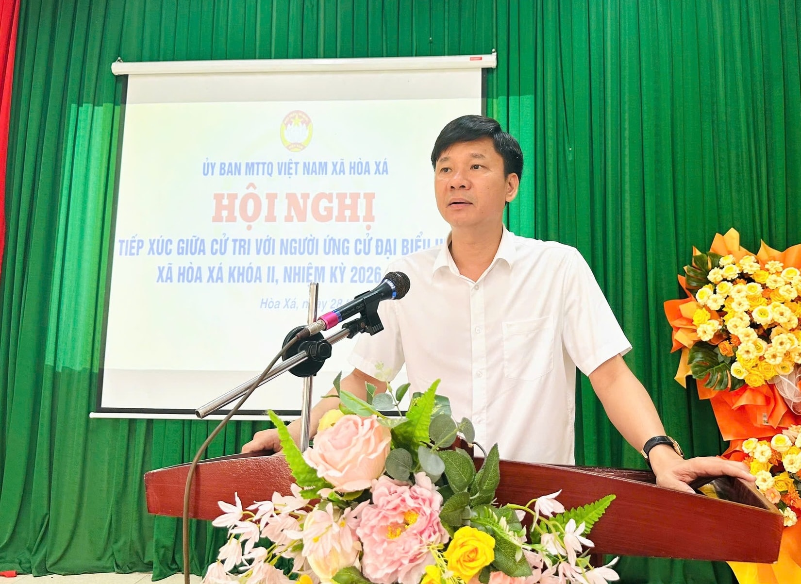 Bí thư Đảng ủy, Chủ tịch HĐND xã Hòa Xá Nguyễn Văn Định, ứng cử viên đại biểu HĐND xã khóa II đã trình bày chương trình hành động với nhiều mục tiêu, giải pháp cụ thể, bám sát Nghị quyết Đại hội Đảng bộ xã nhiệm kỳ 2025-2030.