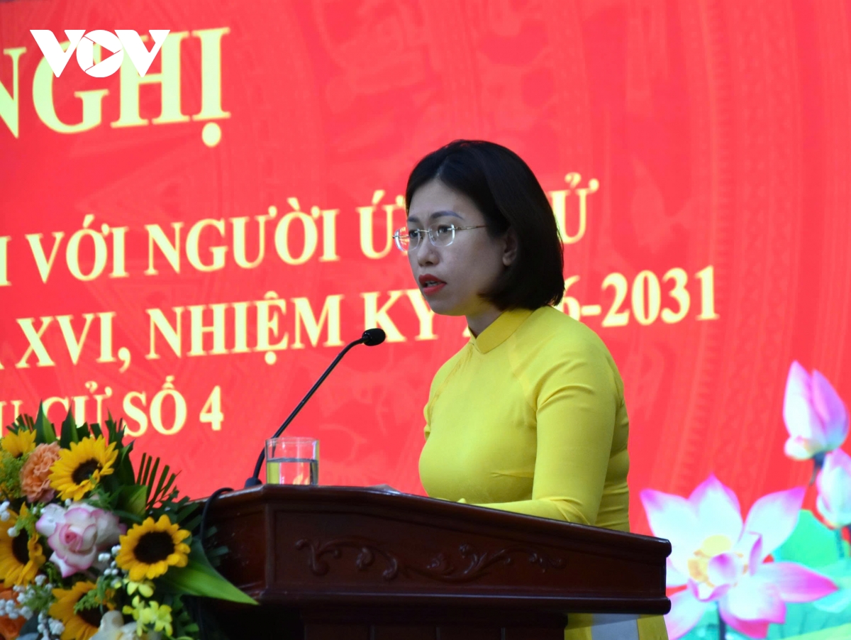 Bà Phan Thị Thúy Linh, Phó Chủ tịch Ủy ban MTTQ Việt Nam TP Đà Nẵng, ứng cử viên Đại biểu Quốc hội trình bày chương trình hành động
