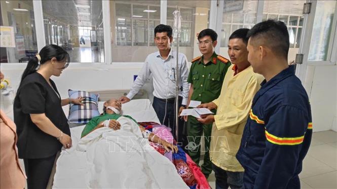 Lãnh đạo xã thăm hỏi nạn nhân tại bệnh viện khu vực Bồng Sơn. Ảnh: TTXVN phát