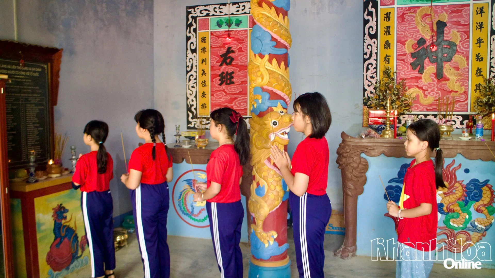 Các em học sinh dâng hương tại Đình làng Hà Liên.