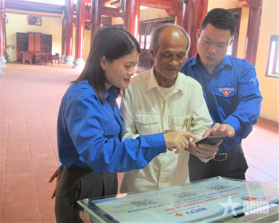 Đoàn viên, thanh niên xã Việt Xuyên (Hà Tĩnh) hướng dẫn người dân sử dụng các ứng dụng số.
