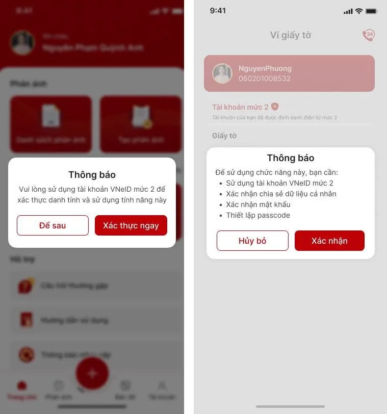 Bước 3: Chọn “Xác thực ngay” hoặc “Xác nhận", ứng dụng sẽ kết nối với VNeID để xác thực thông tin công dân.