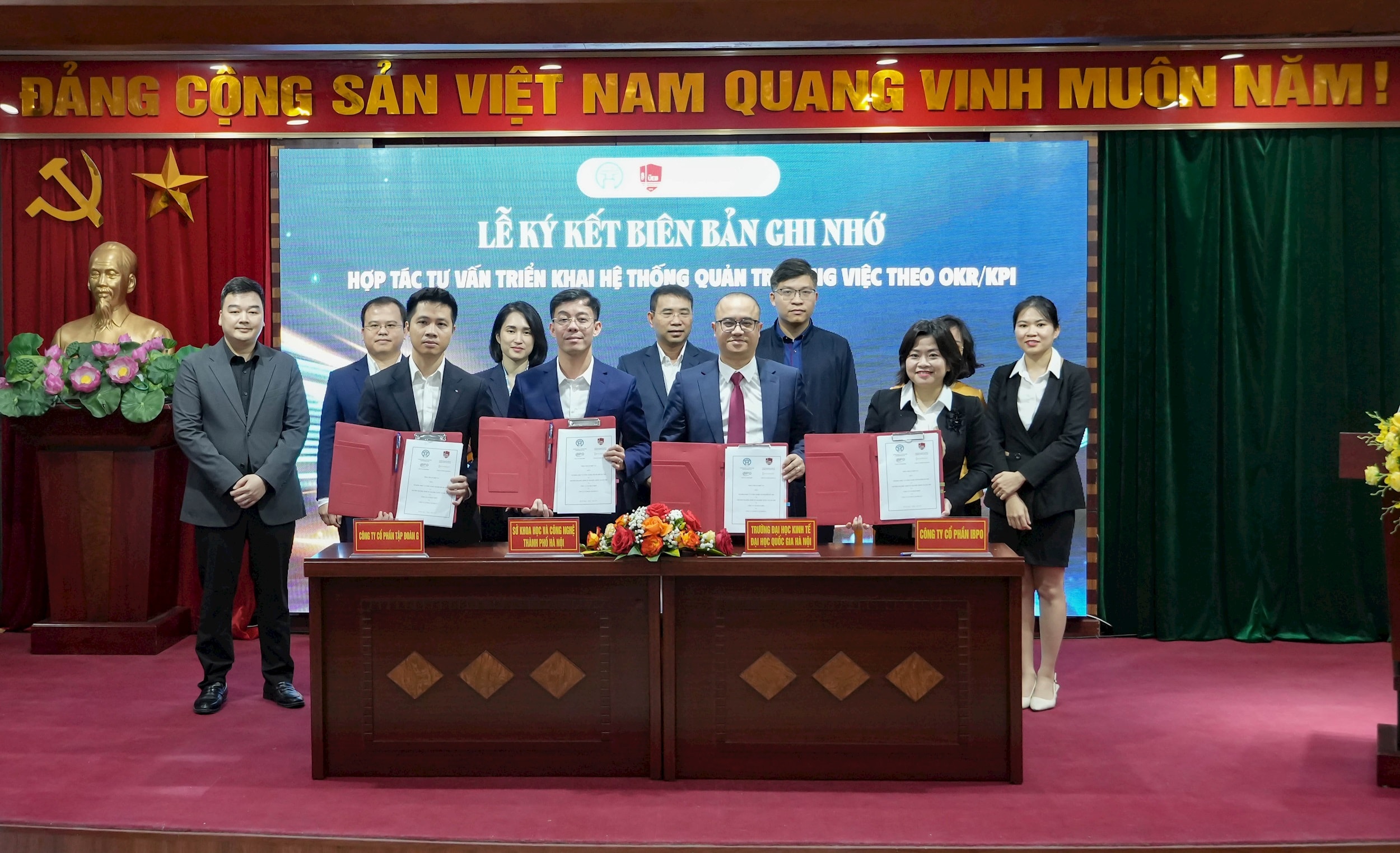 Sở Khoa học và Công nghệ Hà Nội và các đối tác (Trường ĐH Kinh tế, ĐH Quốc gia Hà Nội; Công ty CP IBPO và Tập đoàn G-Group) ký kết biên bản ghi nhớ hợp tác tư vấn triển khai hệ thống quản trị công việc theo OKR/KPI
