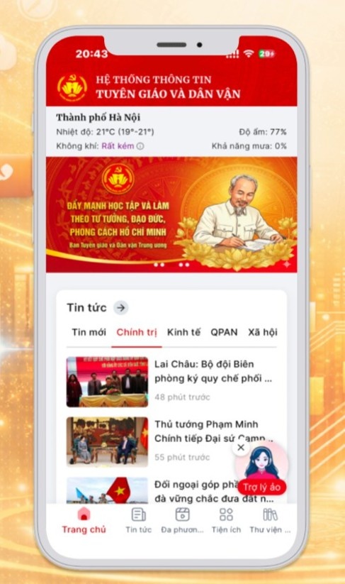 Ứng dụng Tuyên giáo và Dân vận ra mắt nhằm cung cấp nền tảng số đa phương tiện hiện đại, cung cấp thông tin tin cậy cho cán bộ, Đảng viên và nhân dân.