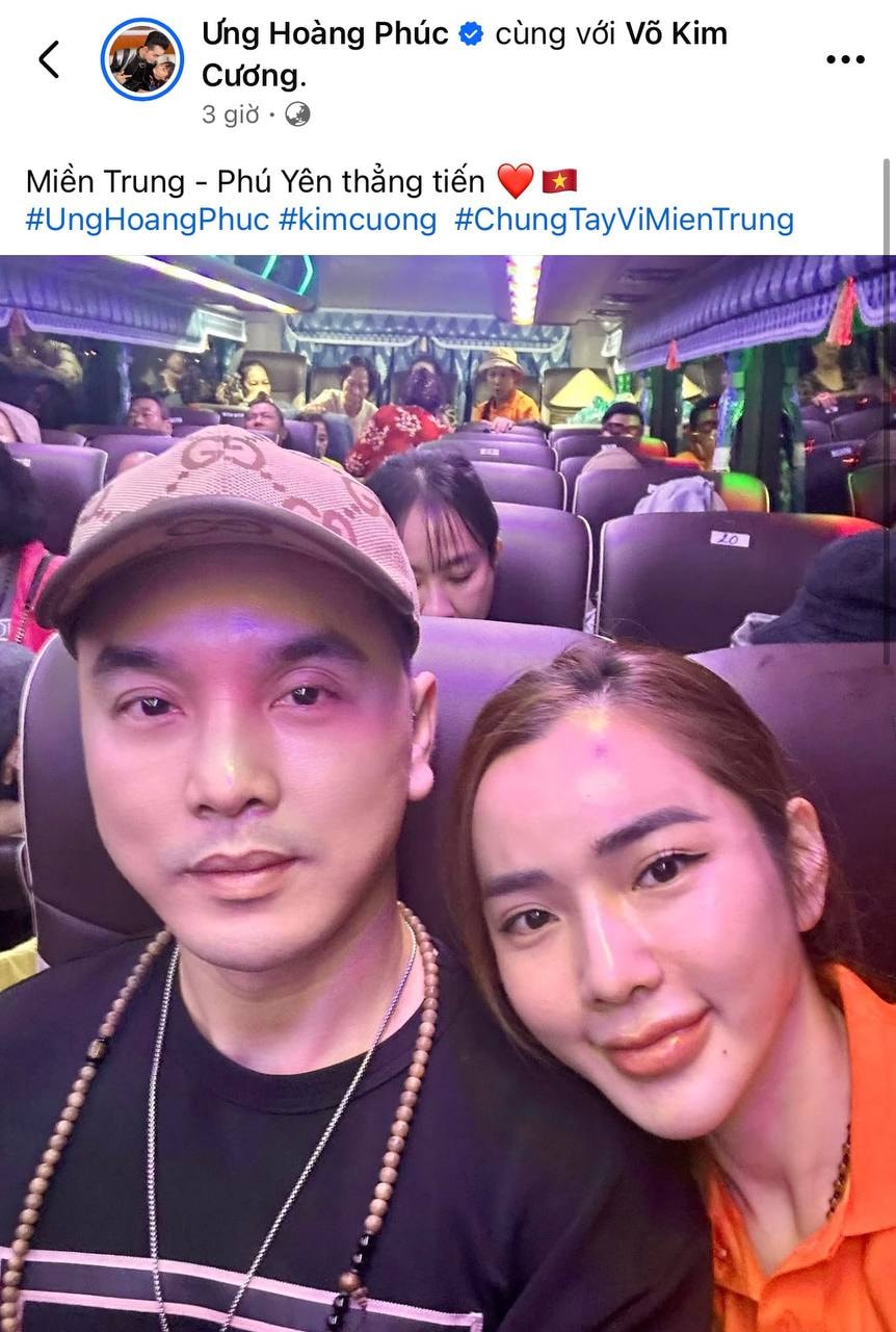 Ưng Hoàng Phúc chia sẻ hình ảnh trên xe di chuyển vào miền Trung làm từ thiện cùng với vợ