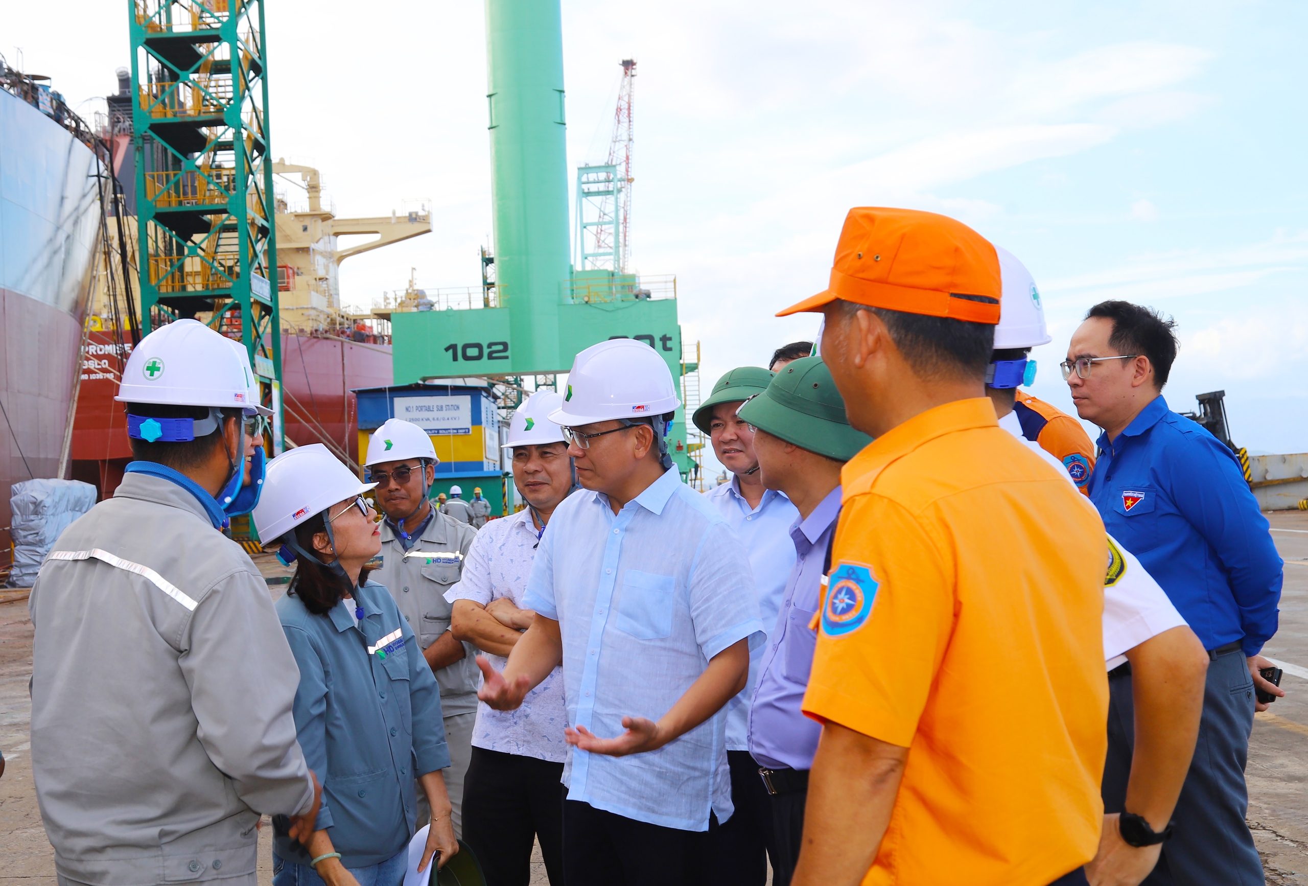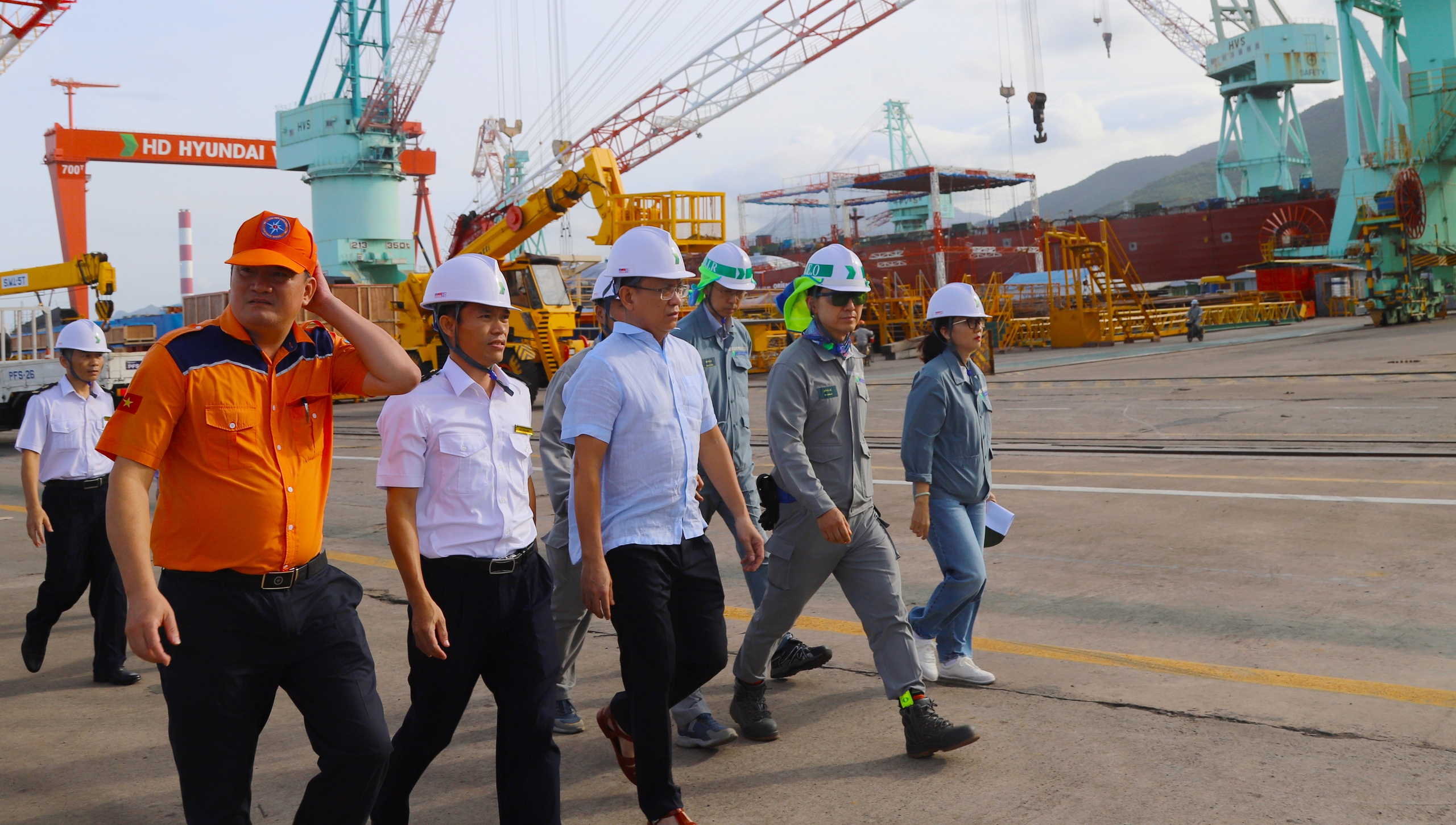 Đoàn công tác đã kiểm tra, chỉ đạo công tác phòng, chống lụt bão tại bến cảng Nha Trang, Công viên Bến du thuyền Quốc tế, cảng Quốc tế Nam Vân Phong, cảng Nhà máy Nhiệt điện BOT Vân Phong 1 và Bến cảng Nhà máy đóng tàu HD Hyundai Việt Nam.